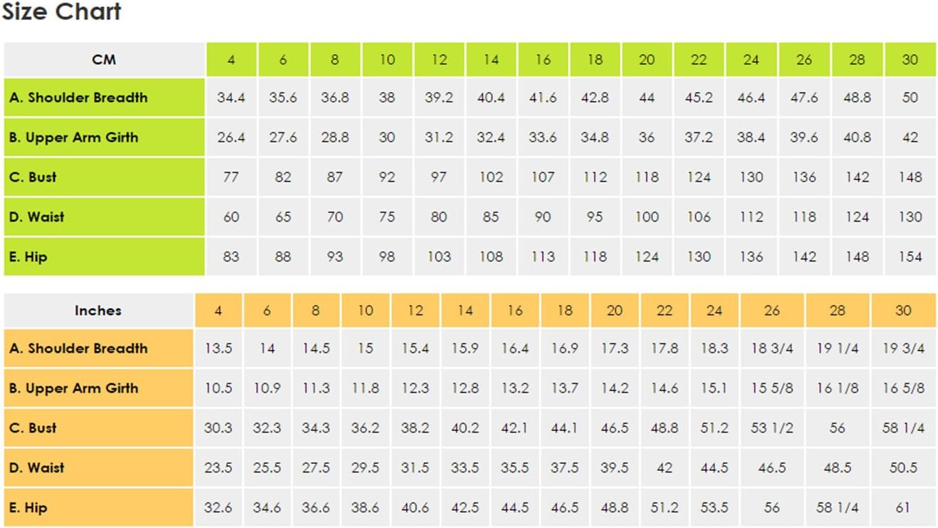 - Sizes 4-18: 115 cm (1.25 yd)