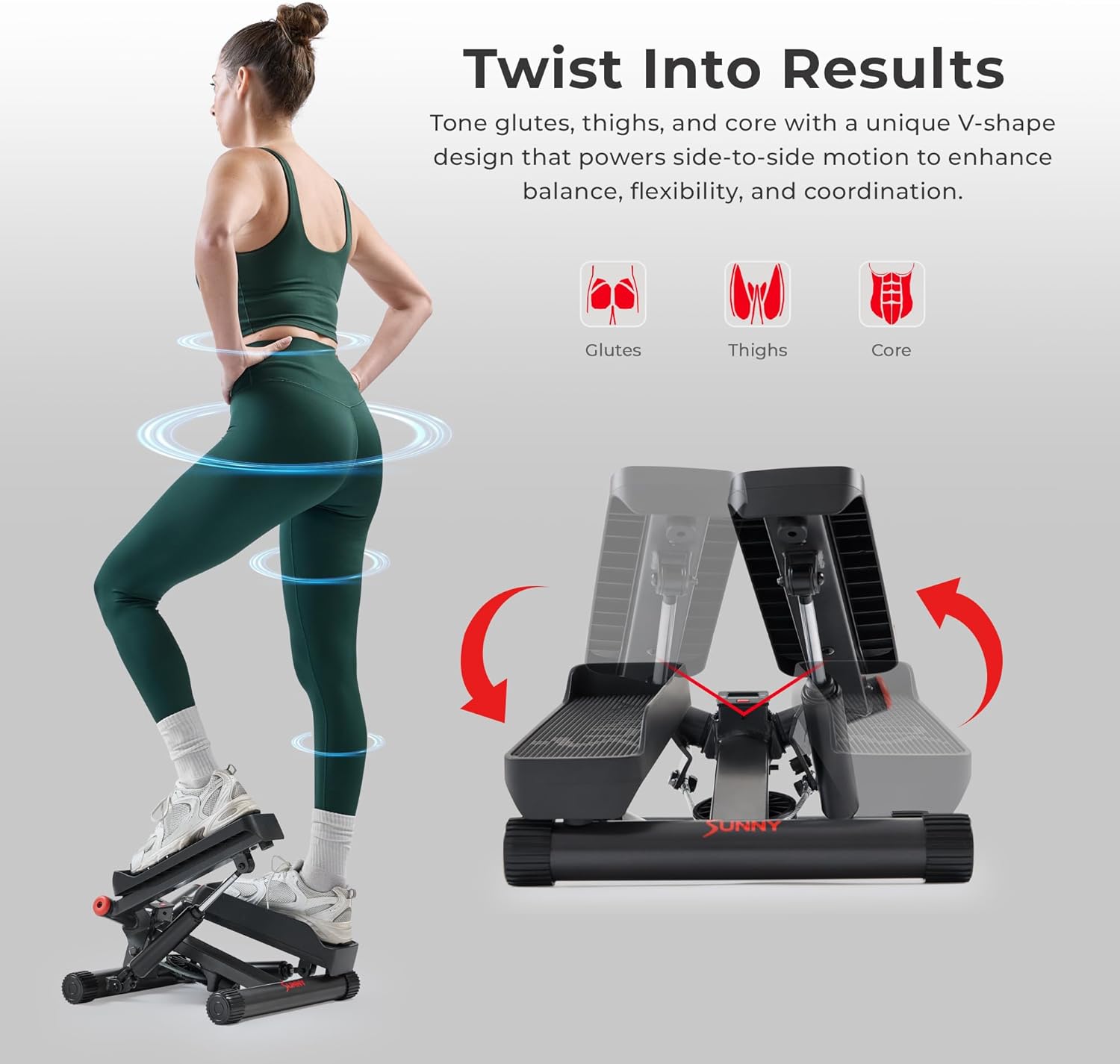 - Twist Action Technology: Engages more muscle groups by targeting thighs, glutes, and core with side-to-side movement.