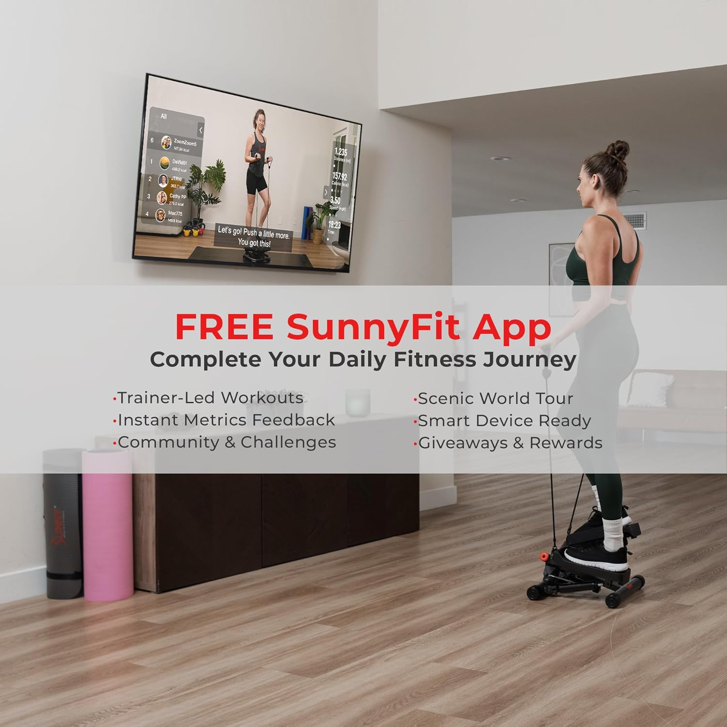 - Smart Fitness Connectivity: Syncs with the SunnyFit App for real-time tracking, coaching, and scenic routes.