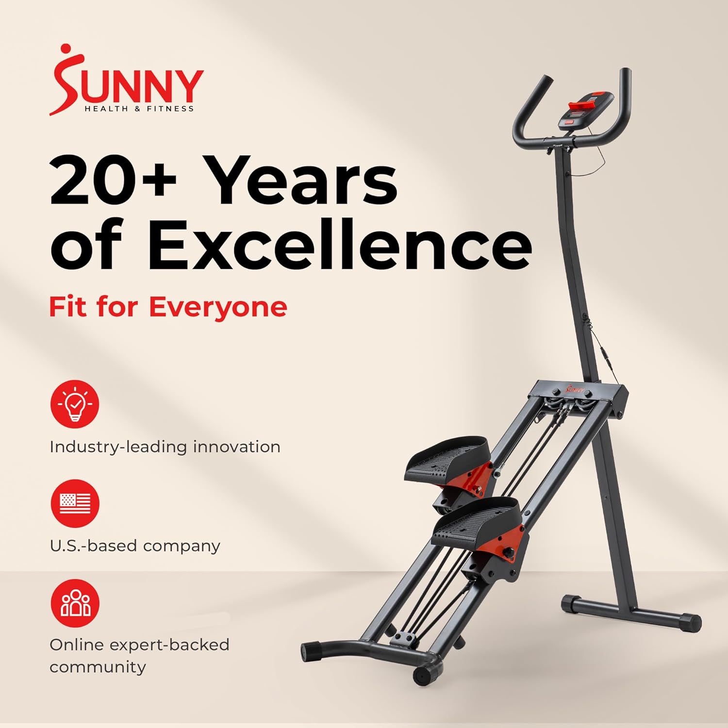 Elevate your home fitness routine with the Sunny Health & Fitness Smart Foldable Stair Climber (SF-S025005). Designed to mimic natural vertical movement, this machine delivers a potent, low-impact cardio workout that effectively targets your legs, core, and glutes. Whether you are a beginner looking to start your journey or an athlete seeking endurance, the innovative hydraulic system provides a smooth climb. The integrated resistance bands add a crucial upper-body element, engaging your arms and back for a full-body burn while smoothing your cadence.