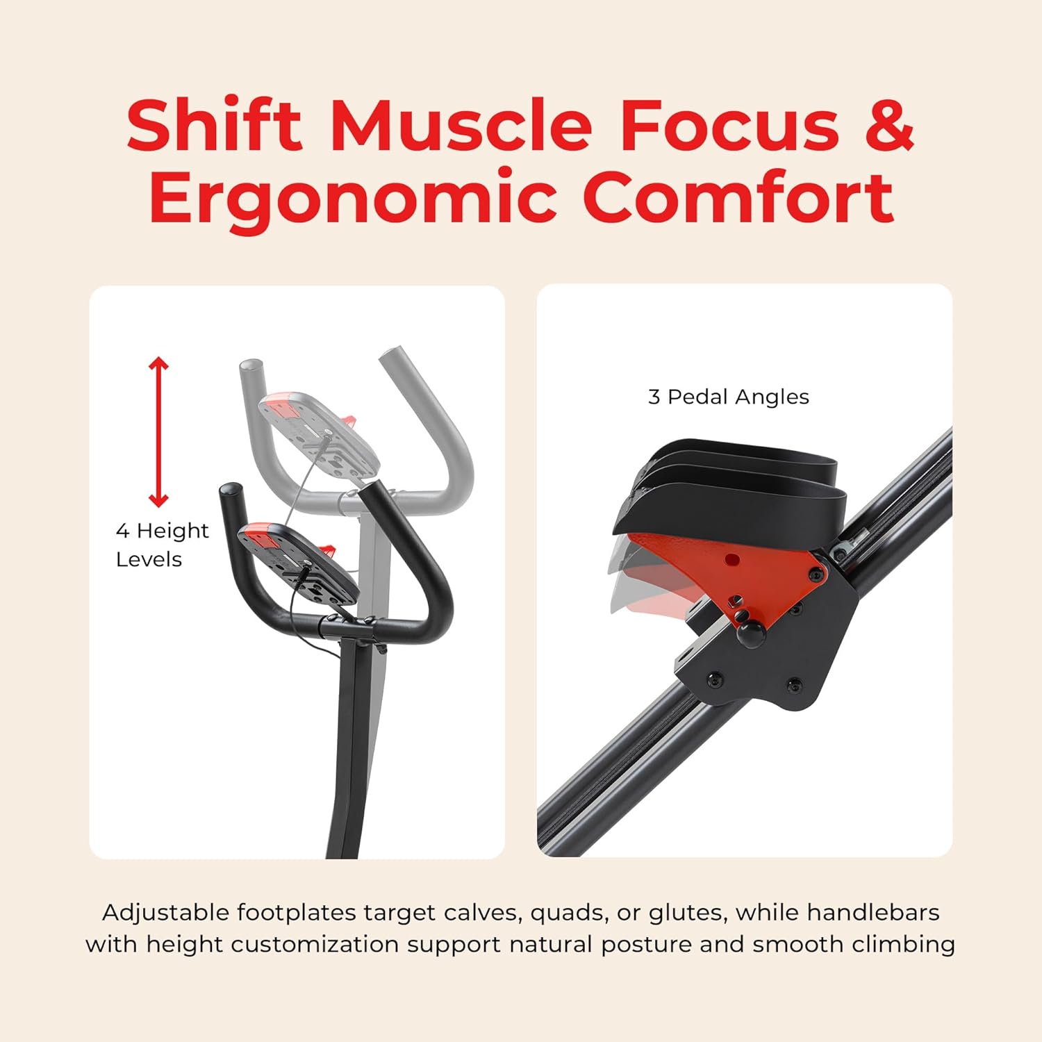 Customizable & Joint-Friendly: Take control of your workout with an adjustable height handlebar and a versatile step range of 8.9 to 21.5 inches. Opt for shorter strides to protect your joints or extend your step for maximum muscle activation. The robust triangular frame ensures stability during intense sessions, supporting up to 330 lbs, and conveniently folds flat for easy storage in tight spaces.