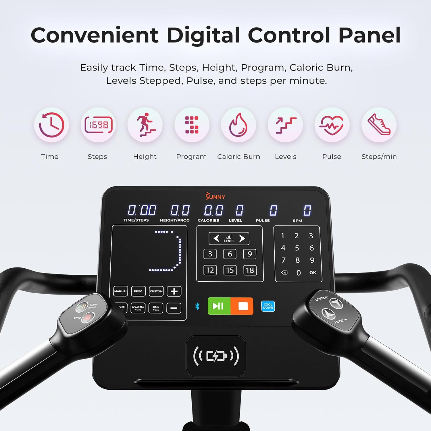 Sunny Health & Fitness Smart Stepper Stair Climber – Commercial Grade Cardio Machine with Bluetooth App, 400 LB Capacity