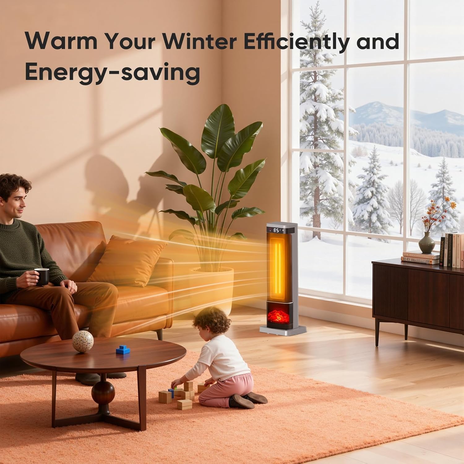 • This tower heater isn’t just about temperature; it’s about ambiance.