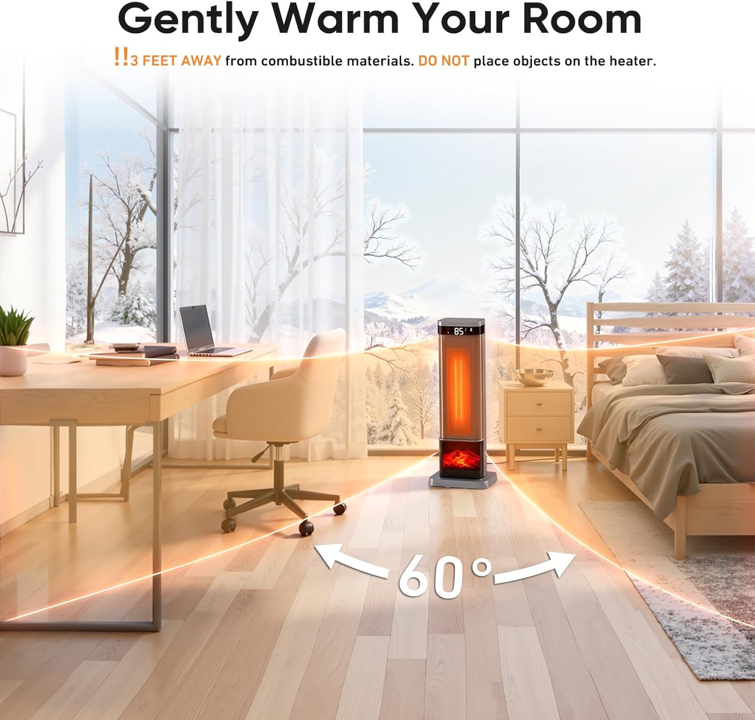❤️ YOUR SAFETY IS OUR PRIORITY: Relax with complete peace of mind. This heater is engineered with your safety as the top priority, featuring automatic tip-over protection and an adjustable thermostat that lets you dial in the perfect temperature from 60°F to 99°F. It’s the worry-free way to stay warm for you and your family.