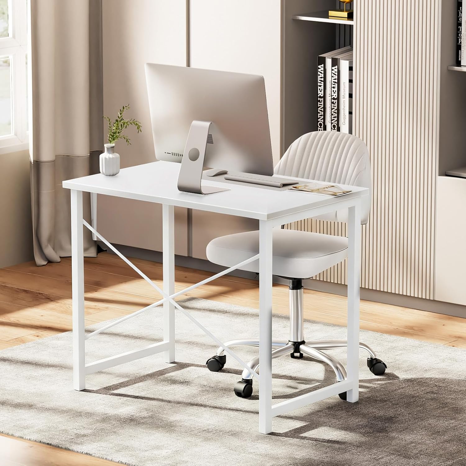 - Space-Saving Minimalist Design: At 32 inches wide, this desk fits effortlessly into tight corners and small bedrooms, offering a generous workspace while maintaining an open, airy feel.