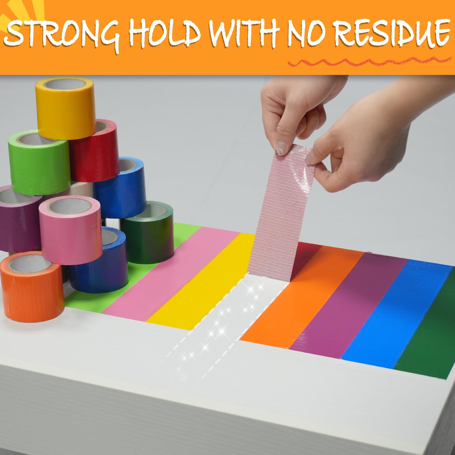 Unleash your creativity and tackle tough repairs with the SWRT 12-Pack Rainbow Colored Duct Tape. This comprehensive set features 12 vibrant colors—including Red, Orange, Yellow, Green, Blue, and Purple—allowing you to color-code your projects or add a artistic flair to everyday repairs. Unlike standard gray duct tape, this heavy-duty cloth tape is designed to be as visually appealing as it is strong, making it perfect for everything from school crafts and DIY home décor to industrial marking and heavy-duty bundling.
