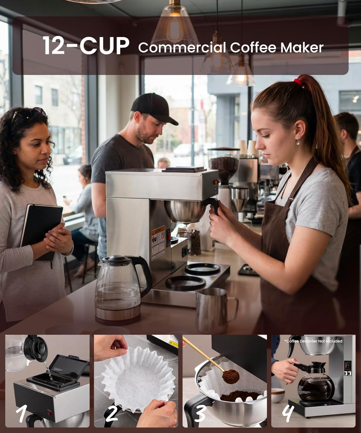 - High-Capacity Brewing: Capable of brewing up to 12 cups per cycle, maximizing output and minimizing downtime during peak hours.