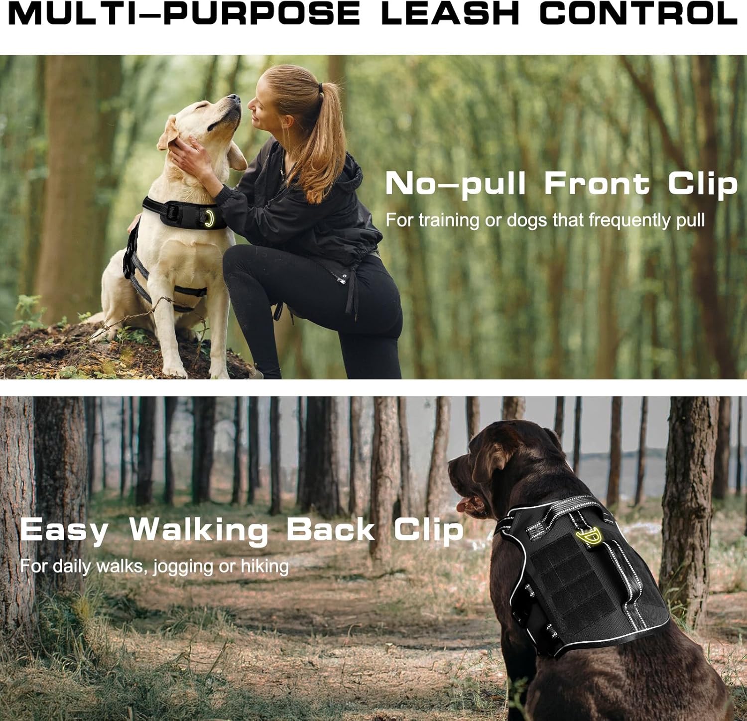 ULTIMATE CONTROL & NO-PULL DESIGN: Take command of every walk with our specialized no-pull configuration. The front metal ring is strategically placed to discourage pulling and assist with behavioral training, while the rear heavy-duty ring is perfect for relaxed jogging or casual walking. Reinforced with two durable nylon handles, you have instant lifting control for assisting your dog over obstacles or ensuring safety in crowded environments.
