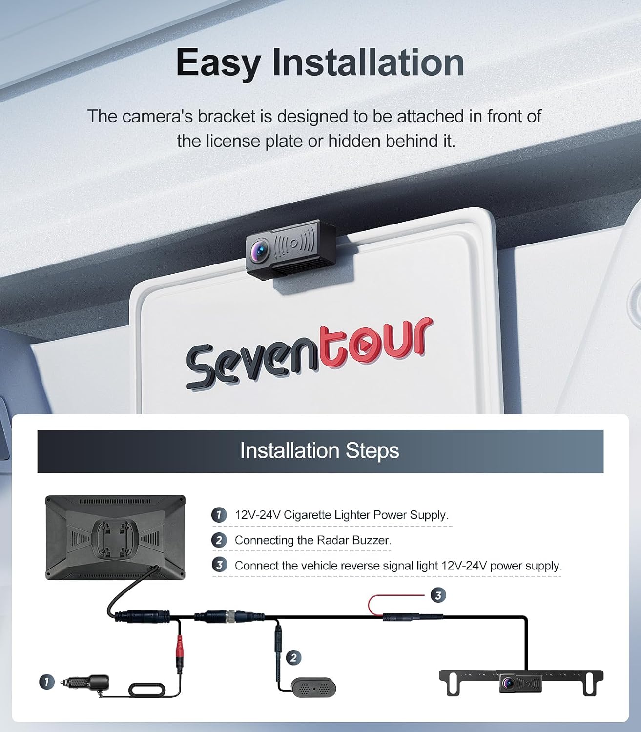 Get on the road in minutes. This system powers directly through your car’s charger port for an instant display. For a cleaner look, hardwire the red wire to your reverse light power, automatically triggering the monitor only when your vehicle is in reverse. The kit includes two versatile mounting brackets to fit any license plate layout, offering adjustable angles (up/down or left/right) for the perfect view.