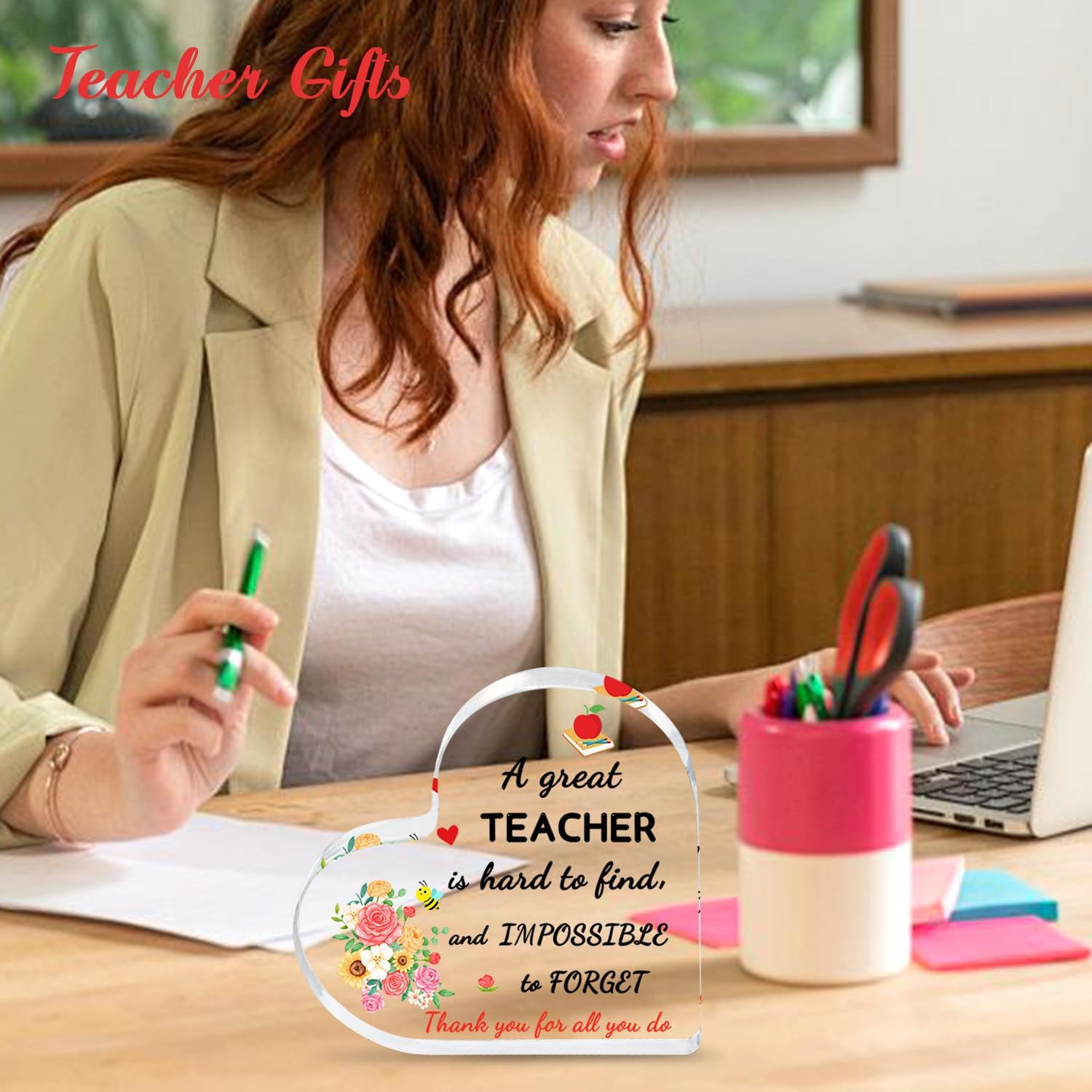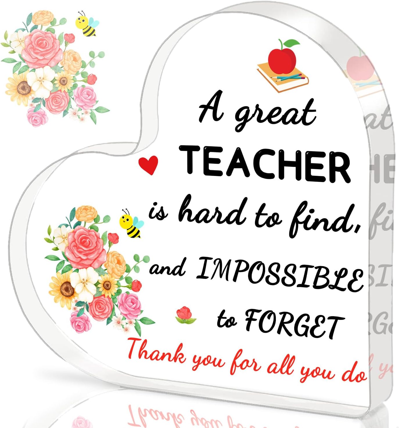 Teacher Appreciation Gifts – Heart Shaped Acrylic Plaque with Stand – Best Retirement, End of Year, Birthday & Thank You Present for Men & Women Educators (4 x 4 Inch)