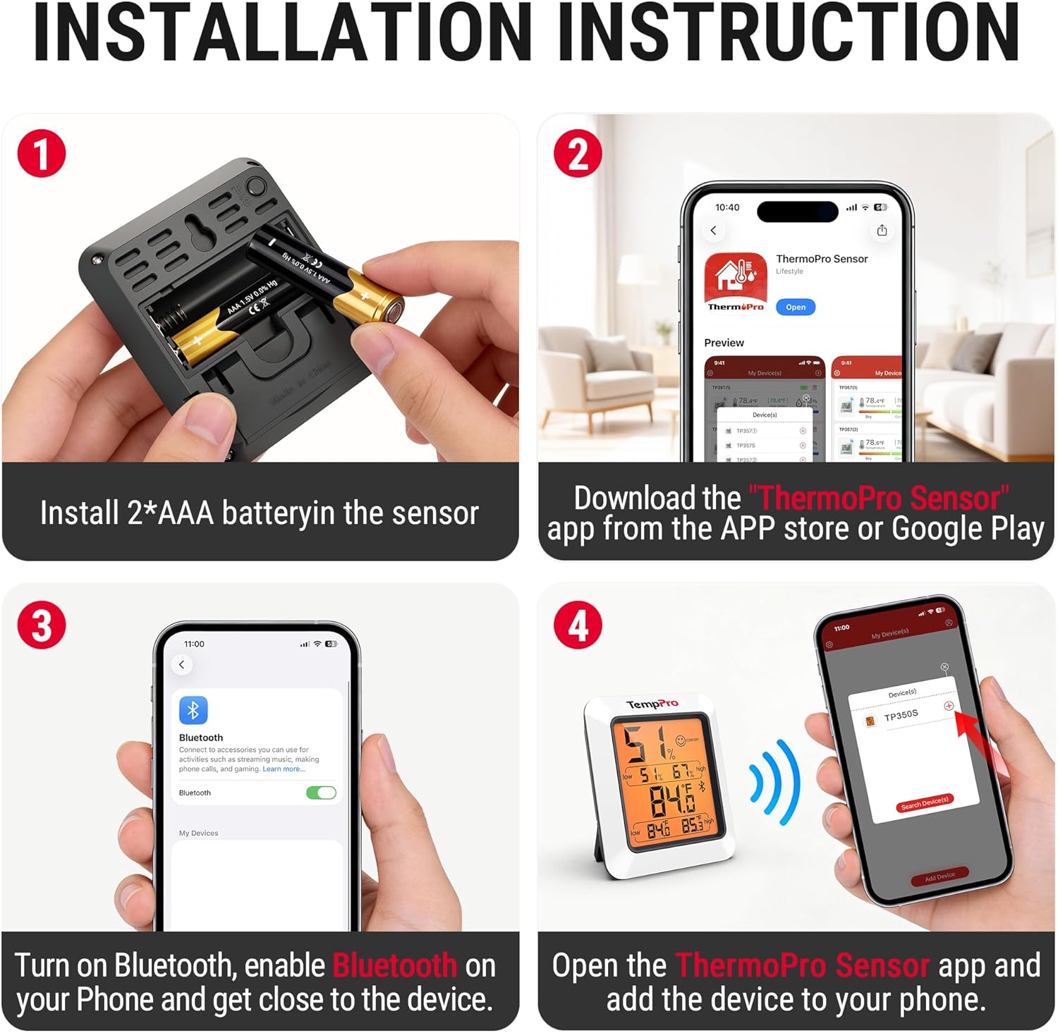 Smart App Monitoring: Connect effortlessly via Bluetooth to monitor real-time environmental changes from up to 260 feet away (line of sight). The app requires no registration, ensuring your data remains private while you stay updated on your surroundings.