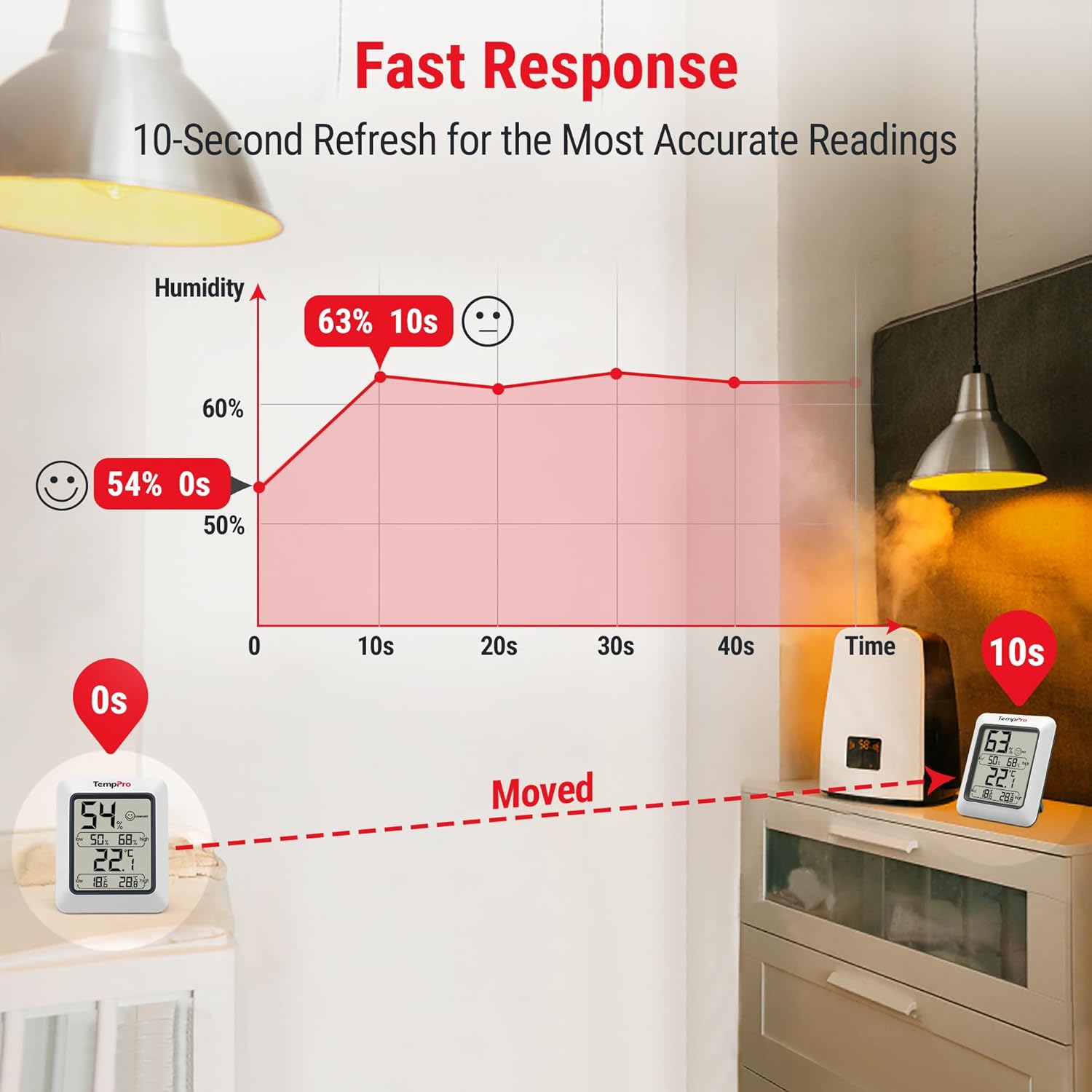 • High Accuracy: Advanced sensors provide precise humidity (±2-3% RH) and temperature (±1°F) readings.