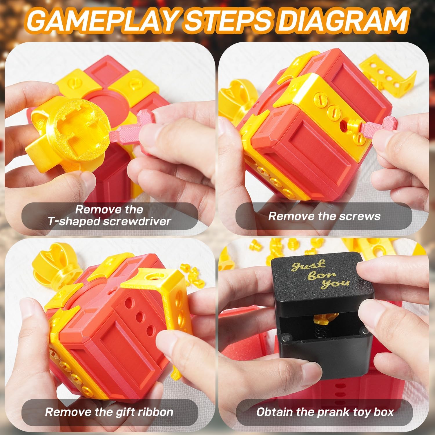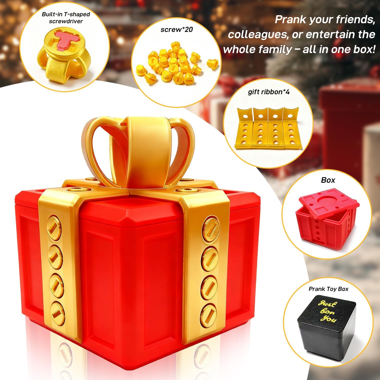 - THE PRANK THAT KEEPS ON GIVING: A hilarious puzzle box secured with screws, forcing the recipient to dismantle it just to get their present.