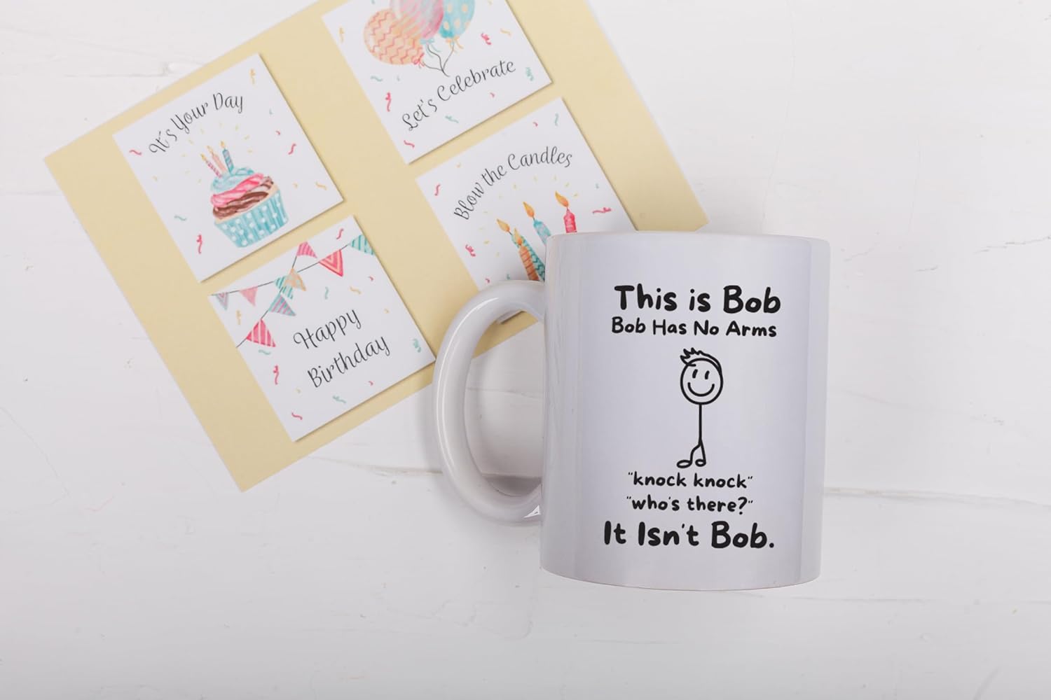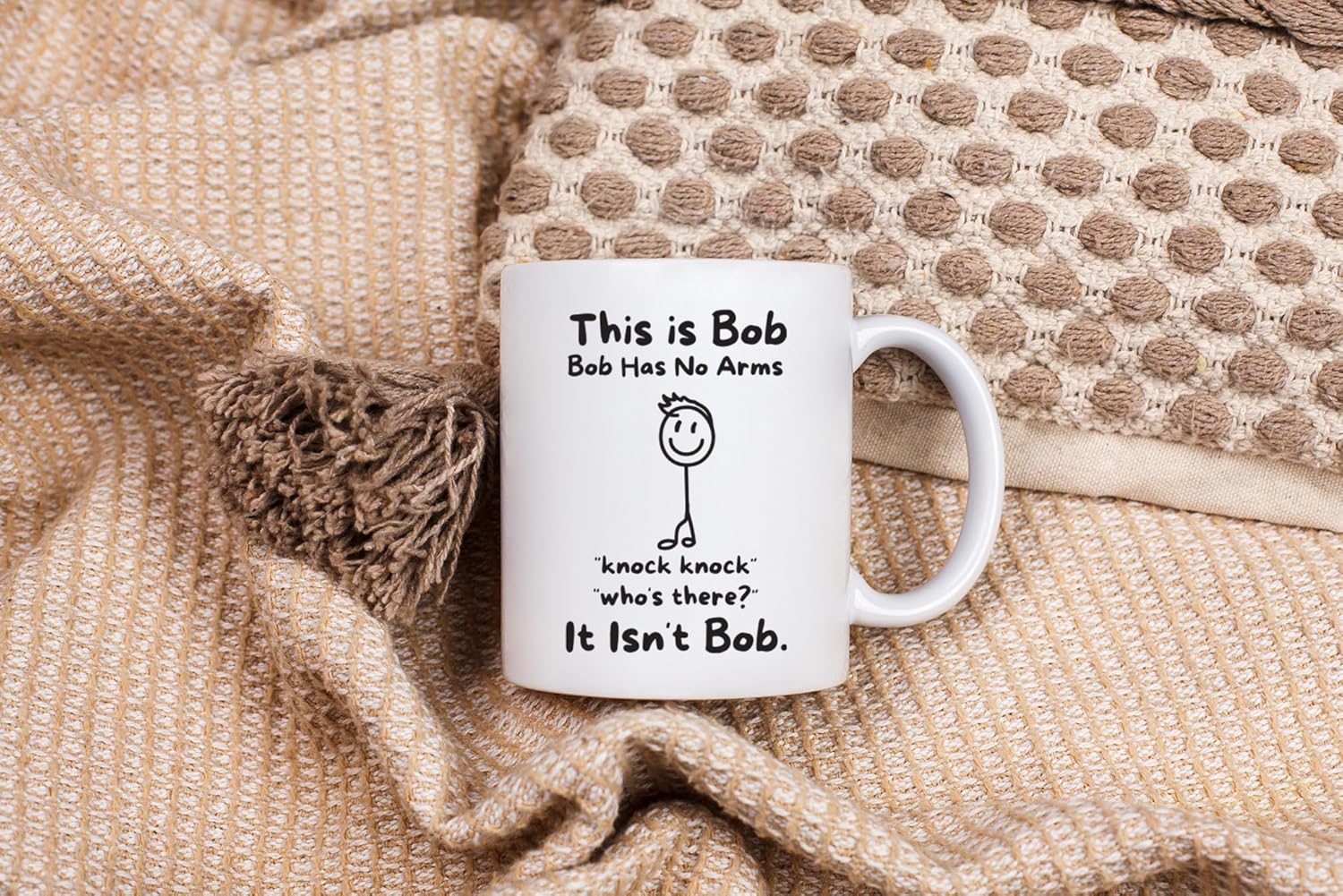 – THE ULTIMATE NOVELTY PRESENT: Struggling to find a funny gift for a birthday, Secret Santa, White Elephant, or Father’s Day? This “Bob Has No Arms” mug is the gag gift that keeps on giving. It’s not just a cup; it’s a mood lifter.