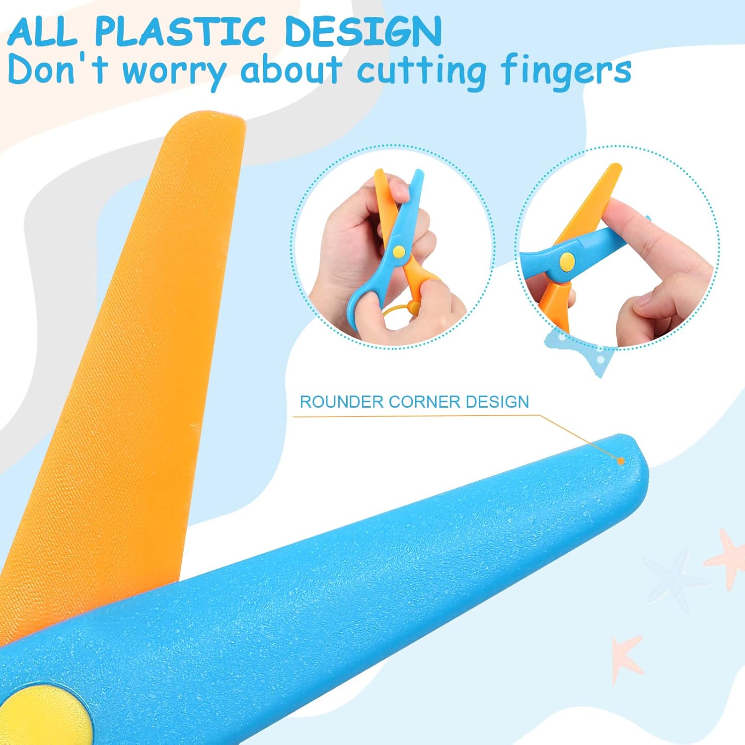 - Child-Safe Construction: Made from rounded ABS plastic with dull blades that cut paper easily but are safe for skin and hair.