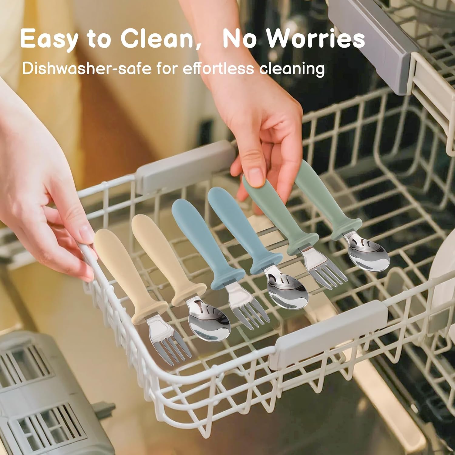 - DISHWASHER SAFE: Designed for busy parents, this durable flatware is easy to clean and sterilize.
