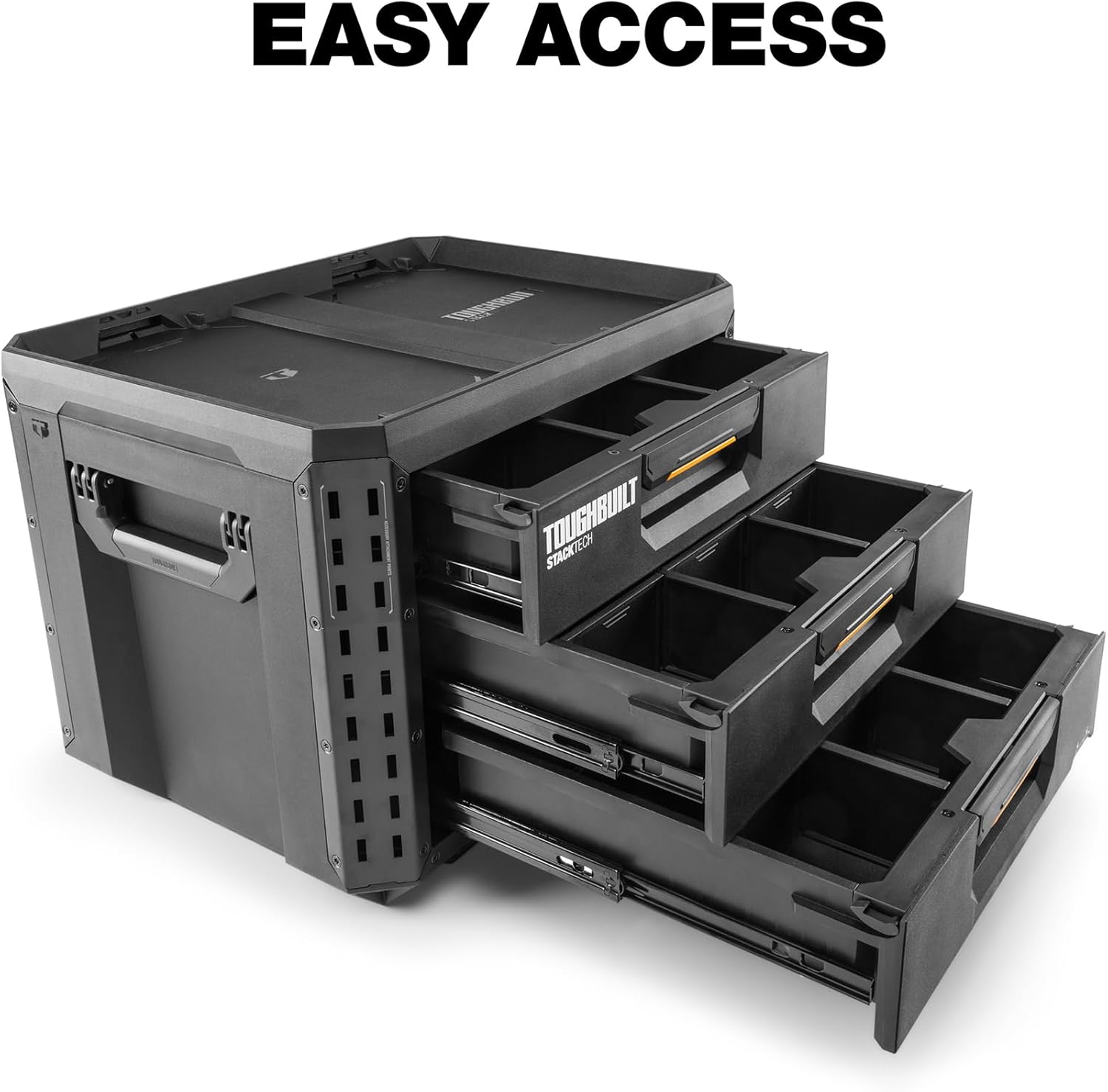 Elevate your job site organization with the ToughBuilt StackTech XL 3 Drawer Rolling Tool Box. Engineered for professional contractors and serious DIYers, this heavy-duty portable chest combines rugged durability with innovative storage solutions. The chassis is constructed from high-performance polymer and reinforced with powder-coated steel corners to withstand harsh job site conditions.