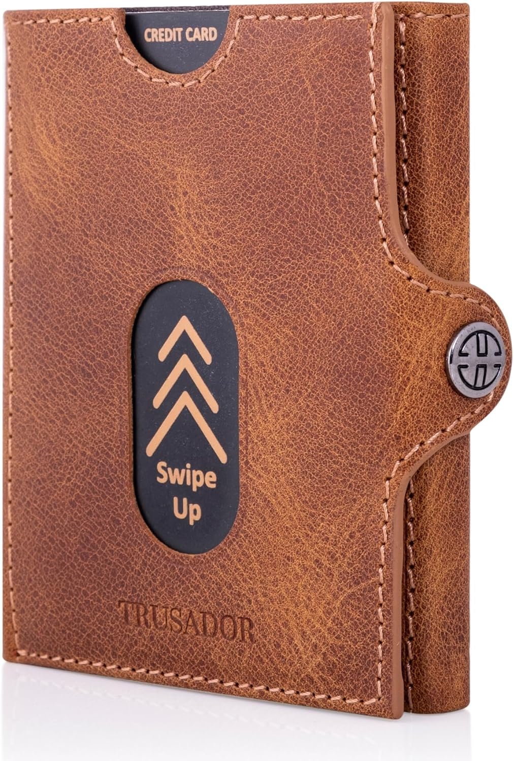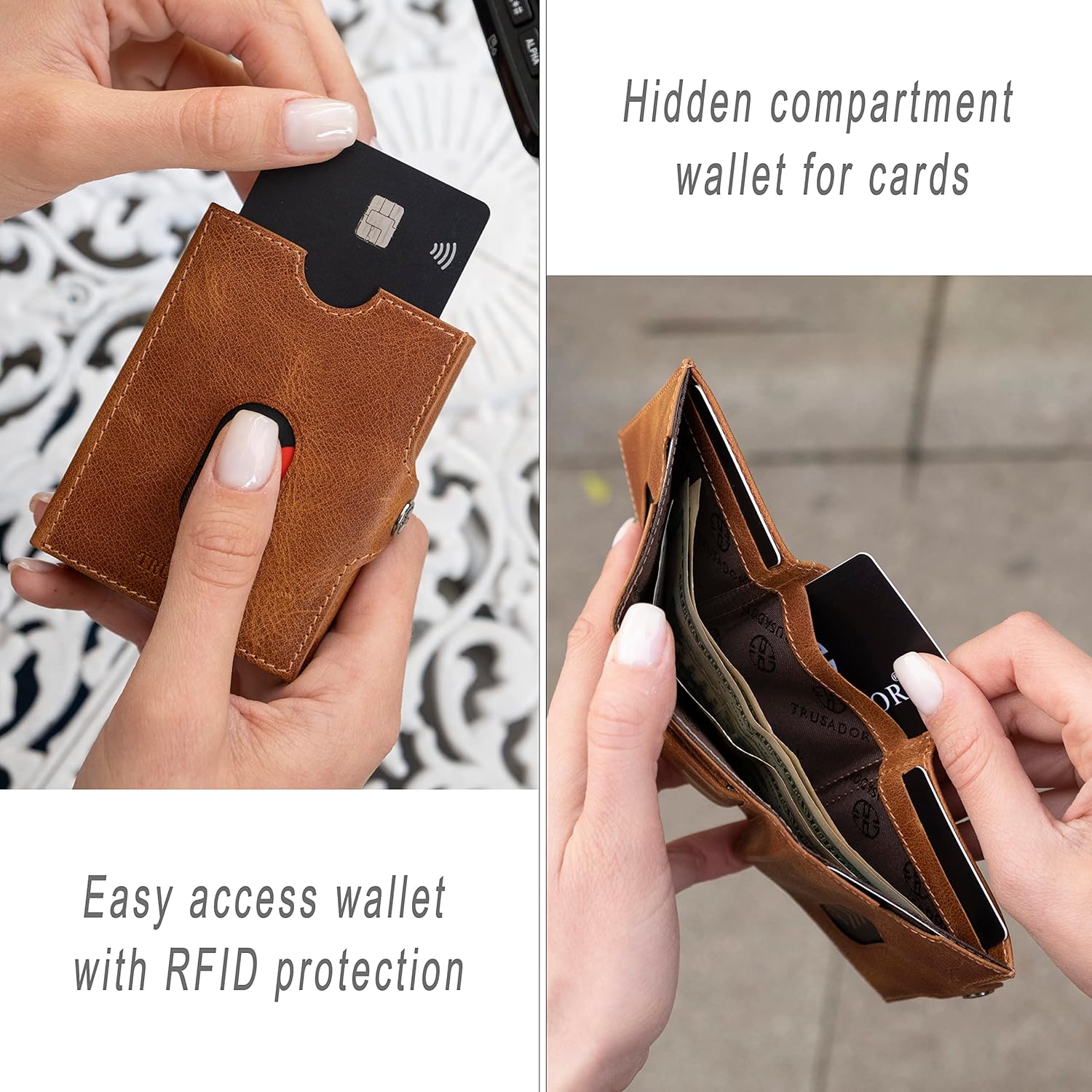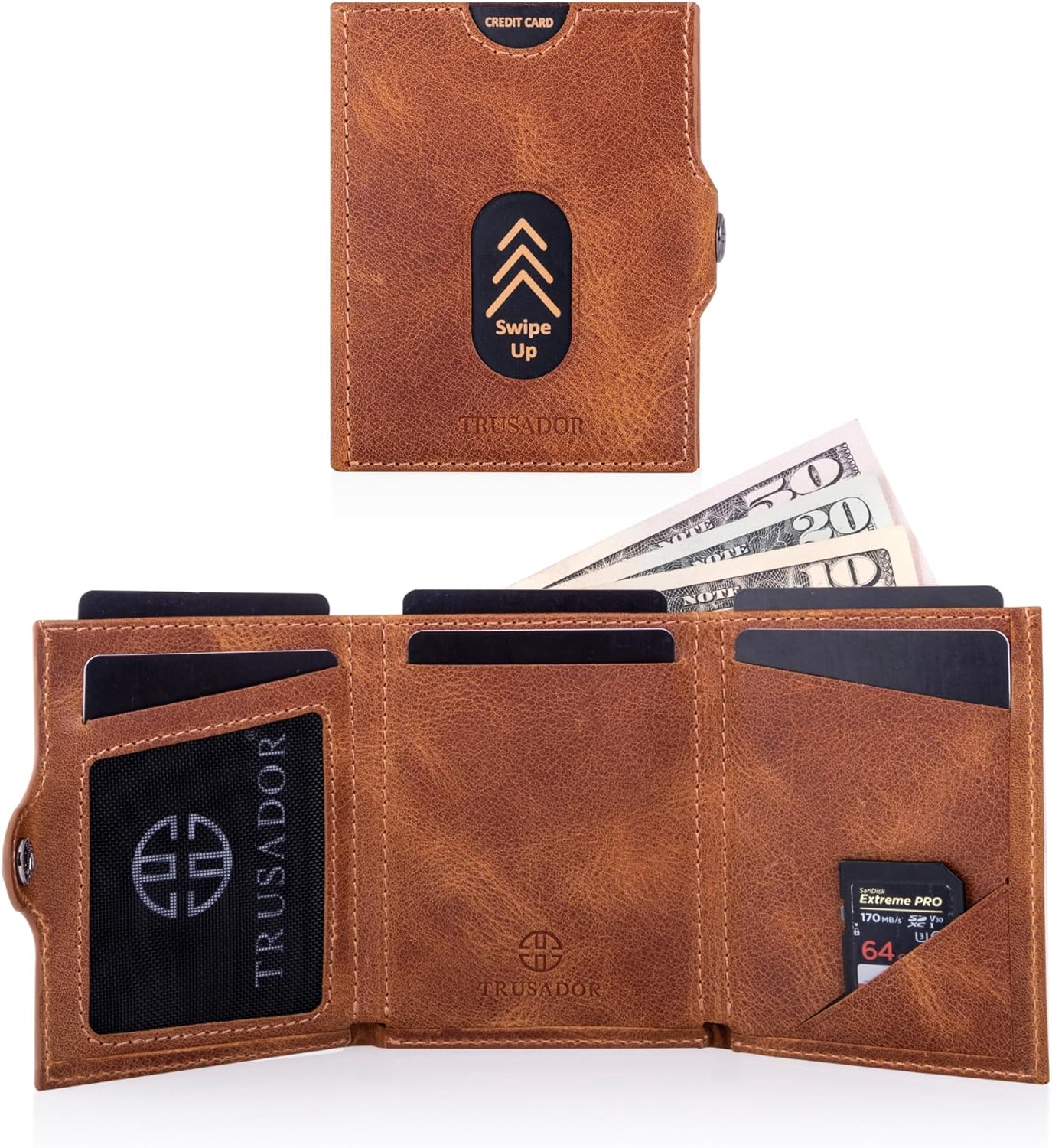 TRUSADOR Valencia Men’s Front Pocket Leather Wallet with RFID Blocking – Slim Trifold Design with Coin Pocket