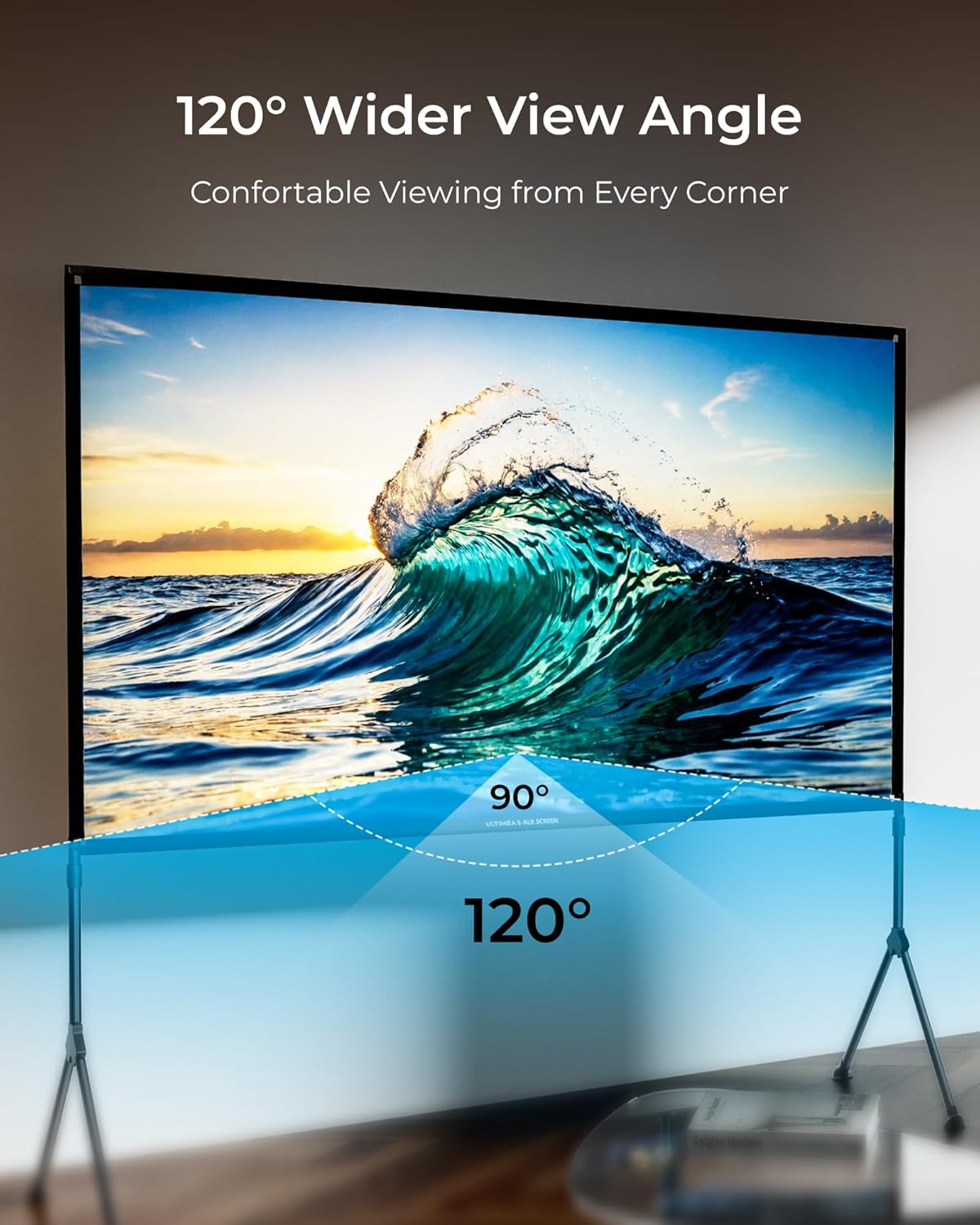Unlike standard white screens or sheets, the ULTIMEA Photon 120 features a specialized silver ALR surface that filters out 80% of intrusive light. It effectively blocks ceiling light and outdoor sun glare, ensuring deep blacks and high contrast ratios (100:1). Whether the curtains are open or the porch lights are on, your image remains crystal clear and comfortable for the eyes.