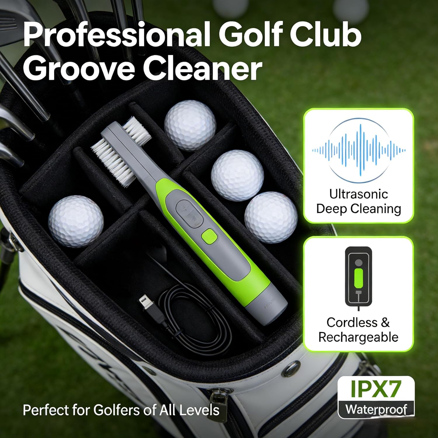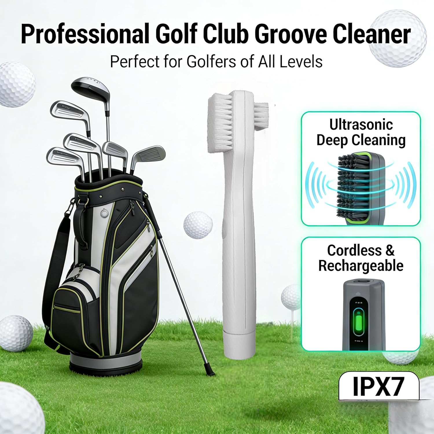 Ultrasonic Golf Club Groove Cleaner – Cordless Rechargeable Electric Brush with 2 Brush Heads, Waterproof Design for Irons Woods Wedges