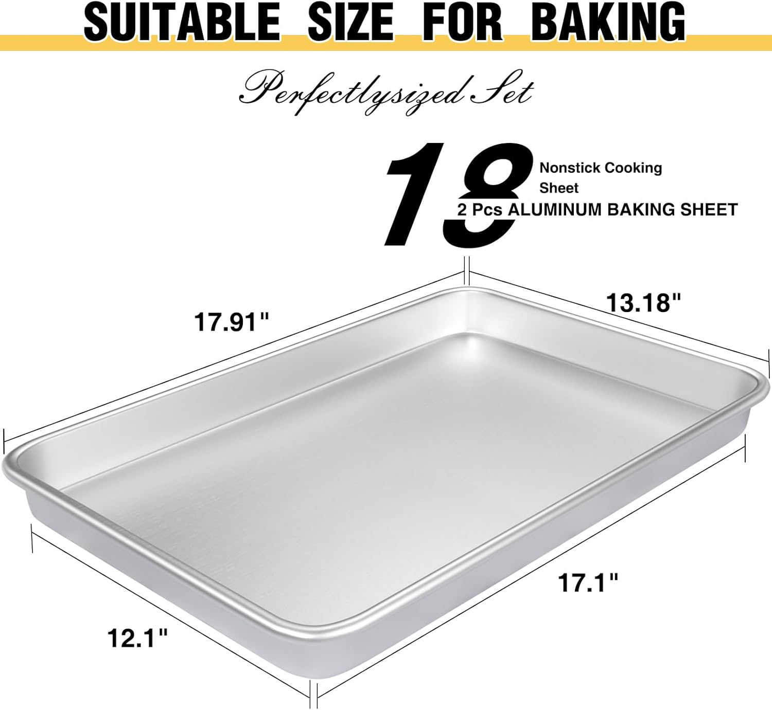 - COMMERCIAL GRADE 18-GAUGE ALUMINUM: Crafted from heavy-duty 0.8mm pure aluminum, these baking sheets resist warping and heat evenly for perfect results every time.