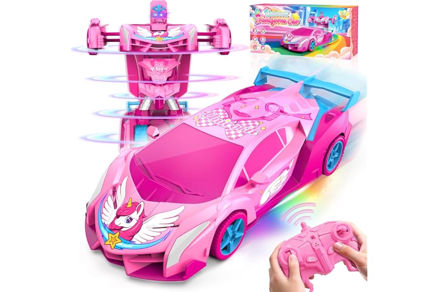 Unicorn Transform RC Cars for Girls Toys with Rainbow Eyes & Underbody Lights, Fast 360°Rotation & 2.4GHz Robot Remote Contro