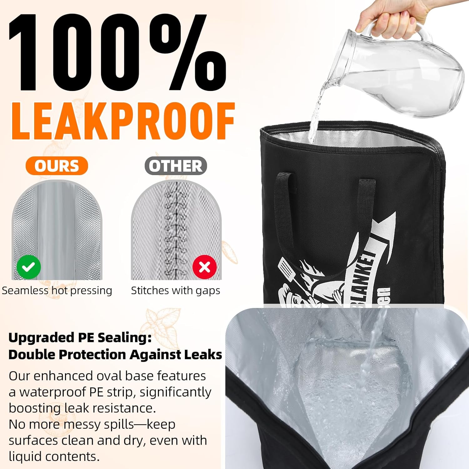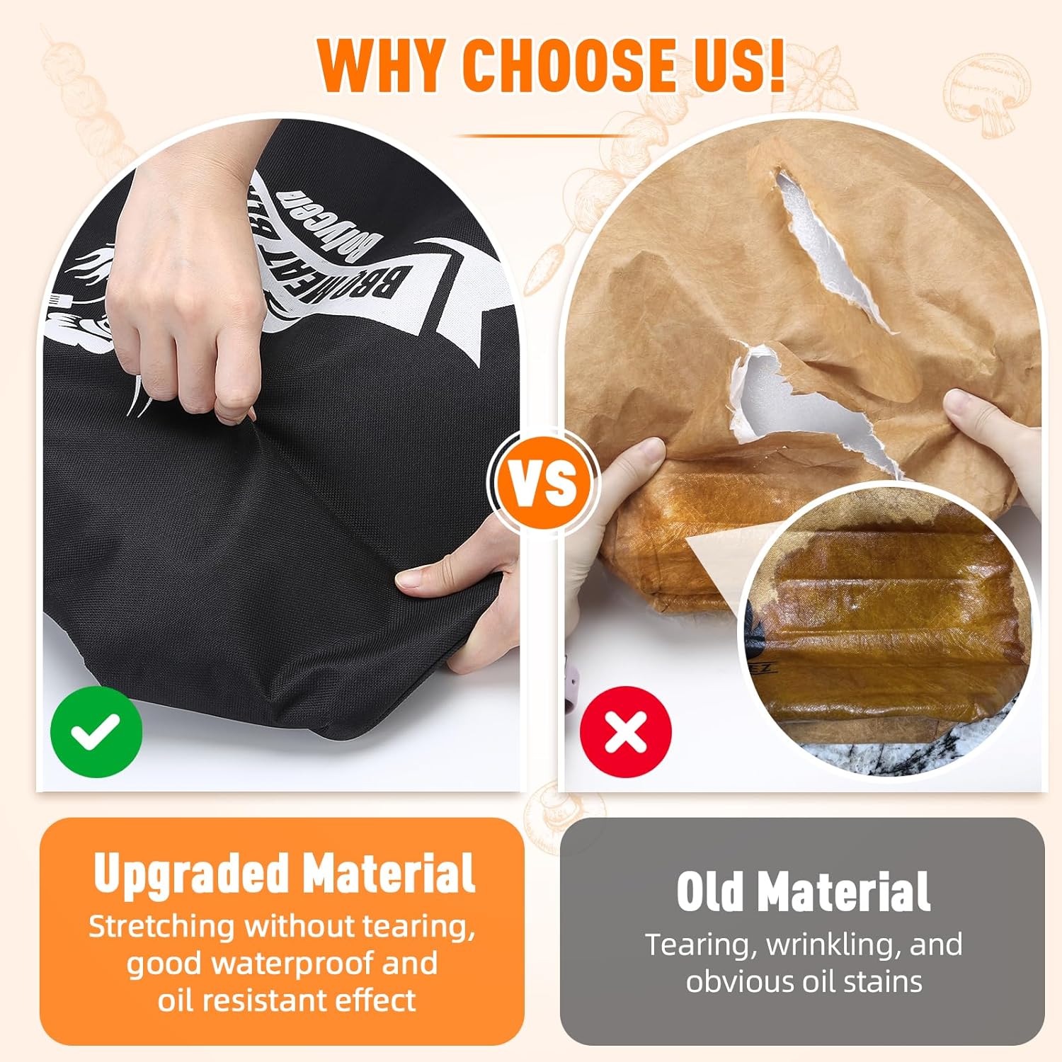 Unlike traditional foil or towels, this bag utilizes advanced 5-layer insulation technology combined with a durable, eco-conscious Oxford cloth outer layer. This creates a thermal barrier that keeps your meat at the perfect serving temperature without drying it out. The wide-mouth design and reinforced oval base make loading heavy cuts easy and mess-free, while the waterproof PE seal prevents leaks, keeping your countertops pristine.