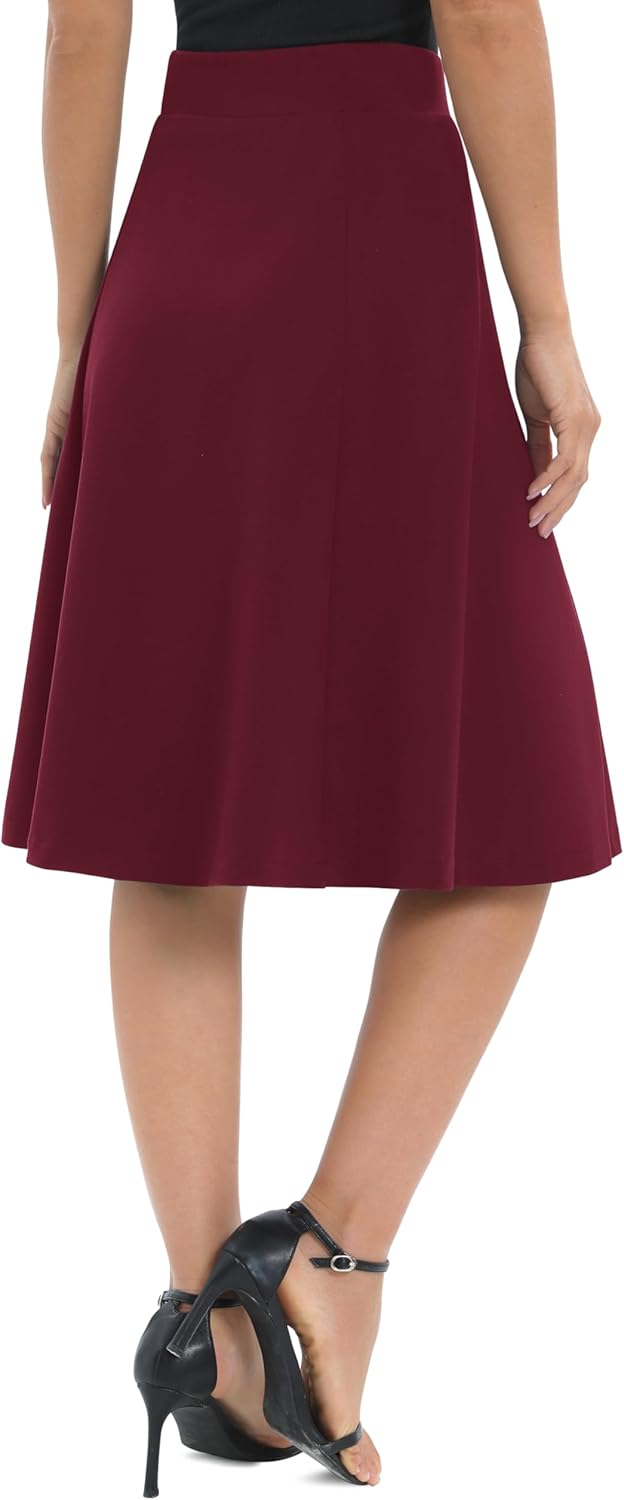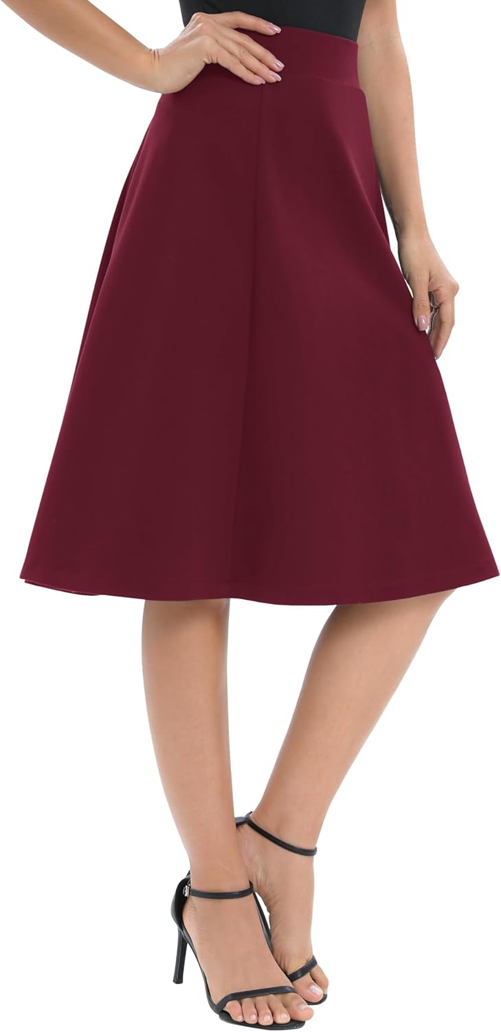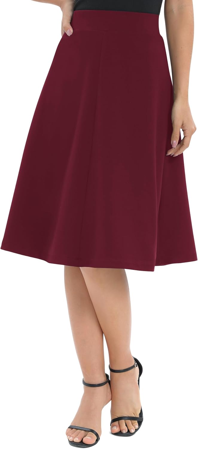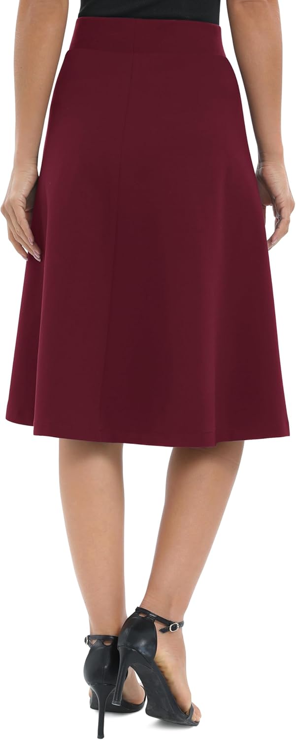 Urban CoCo Women’s High Waisted A-Line Stretchy Skirt – Elastic Midi Flare Bottom for Work & Casual Wear