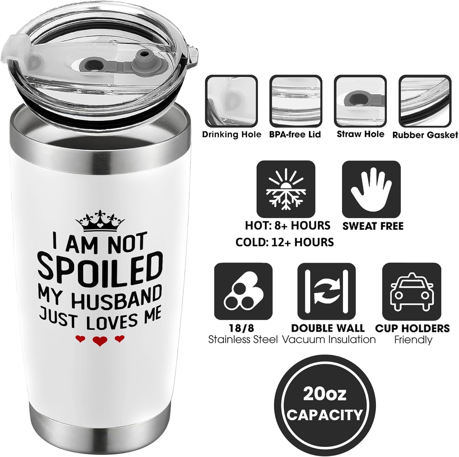 🍷 VERSATILE & DURABLE: Crafted from high-grade, kitchen-grade stainless steel, this 20oz tumbler is built to last. It is sweat-proof and leak-resistant, making it the perfect companion for her daily commute, office desk, yoga class, or weekend getaways. The classic white design fits seamlessly with any decor or style.