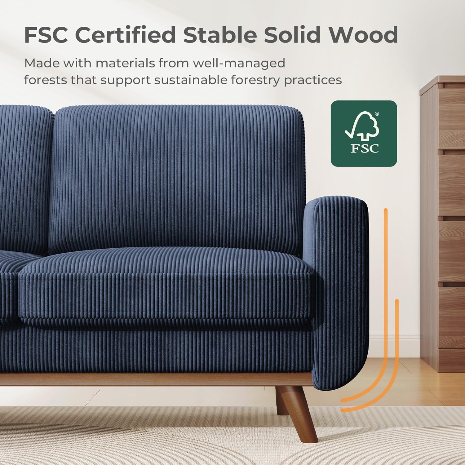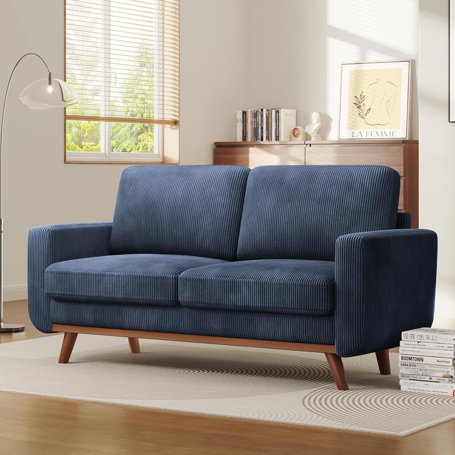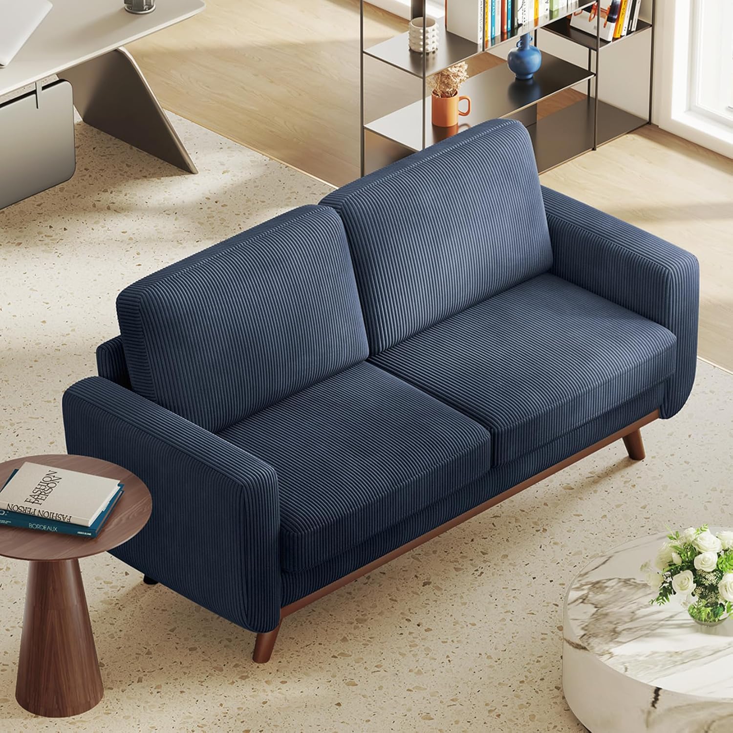 Upgrade your living space with the Vesgantti 68″ Loveseat Sofa, blending mid-century modern design with unmatched comfort. Upholstered in premium dark blue corduroy fabric, this sofa features a unique textured finish that is as soft to the touch as it is visually striking. The ridged velvet-like surface adds a layer of luxury and warmth to any bedroom, office, or living room decor.