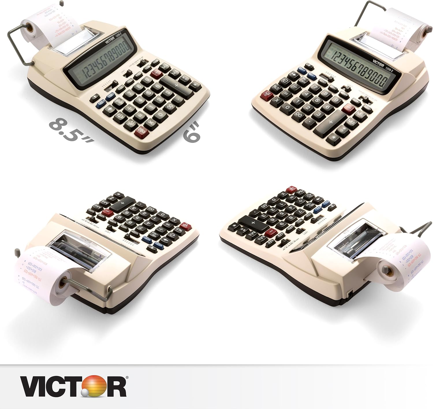 Victor 1208-2 Printing Calculator – 12 Digit LCD Desktop Adding Machine with PC Connectivity, 4.6 LPS, Cost/Sell/Margin & Tax Keys – White
