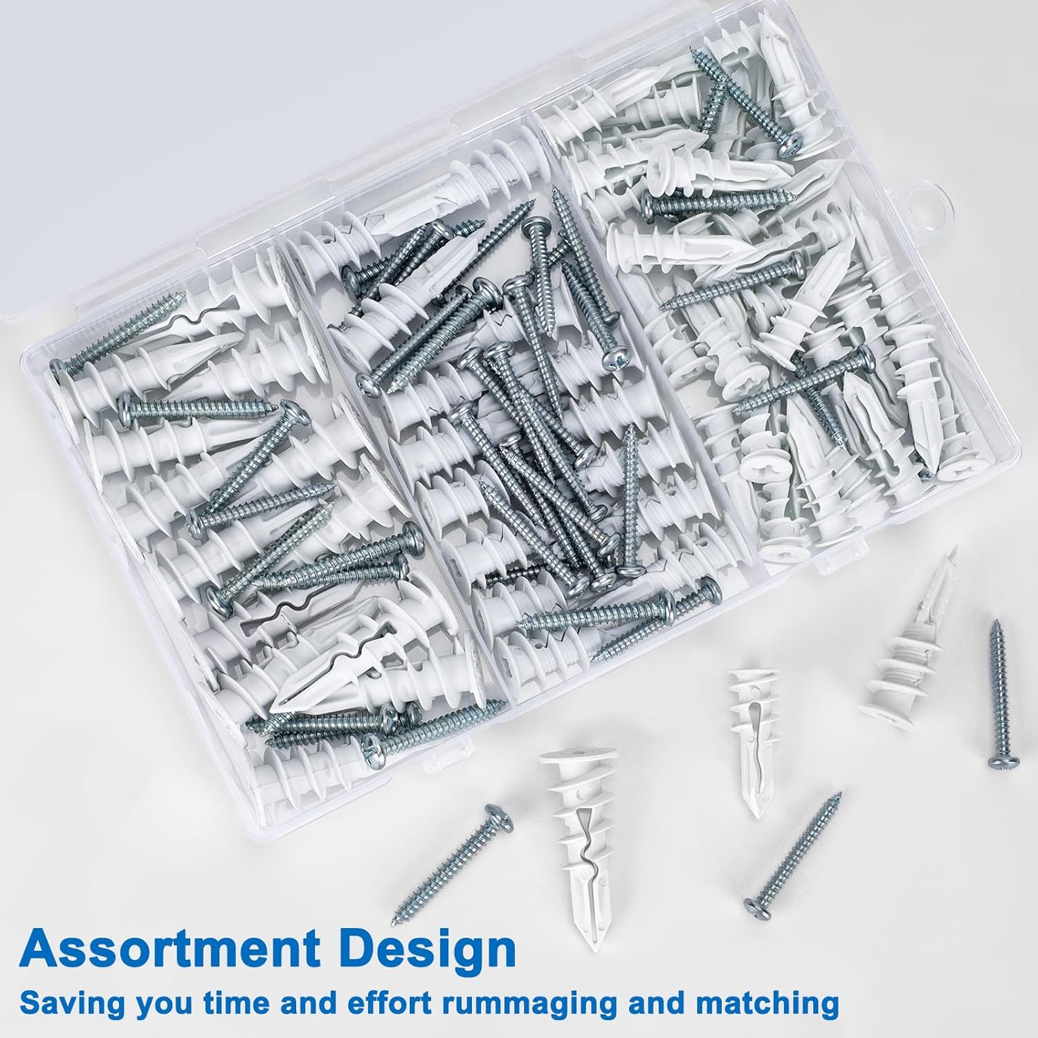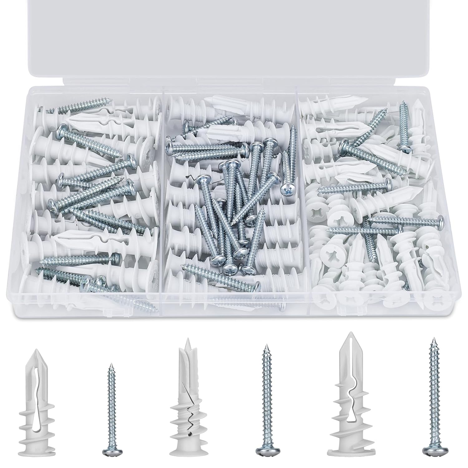 - ALL-IN-ONE KIT: Includes 114 pieces total—57 heavy-duty plastic self-drilling anchors and 57 matching steel screws.