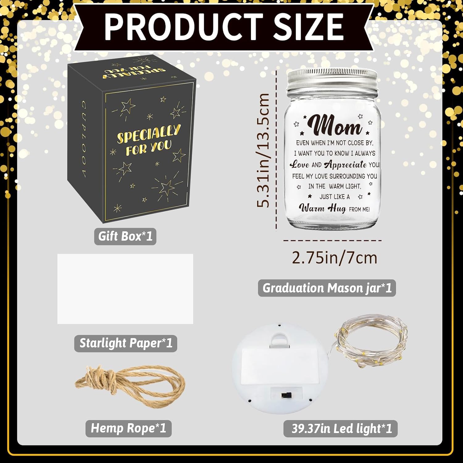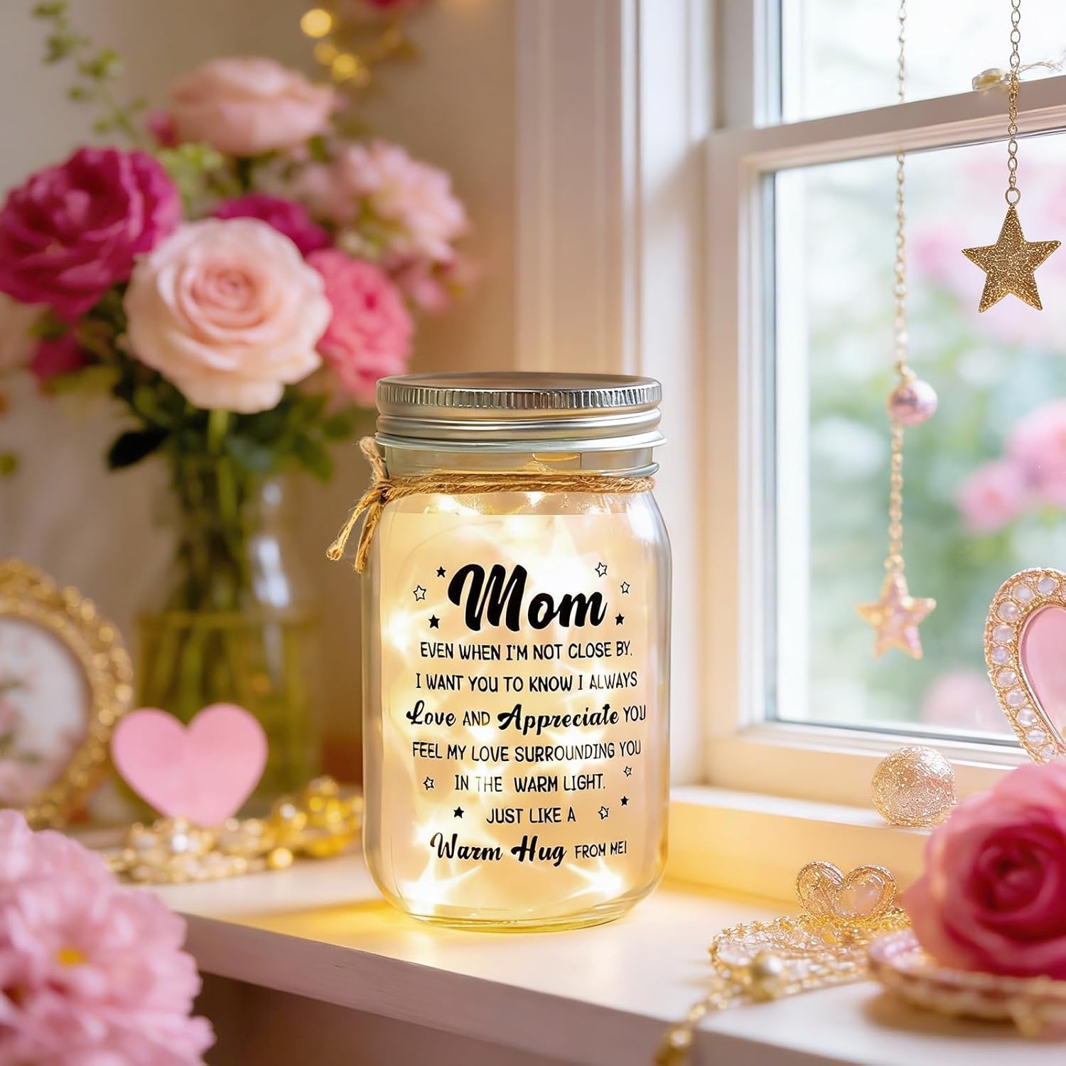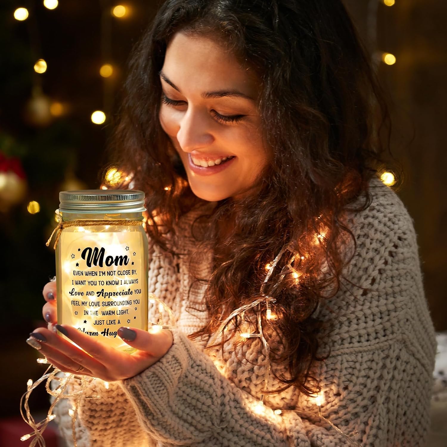 - HEARTFELT ‘WARM HUG’ DESIGN: A sentimental gift for Mom from daughter or son, symbolizing love and gratitude with a cozy, glowing mason jar aesthetic.