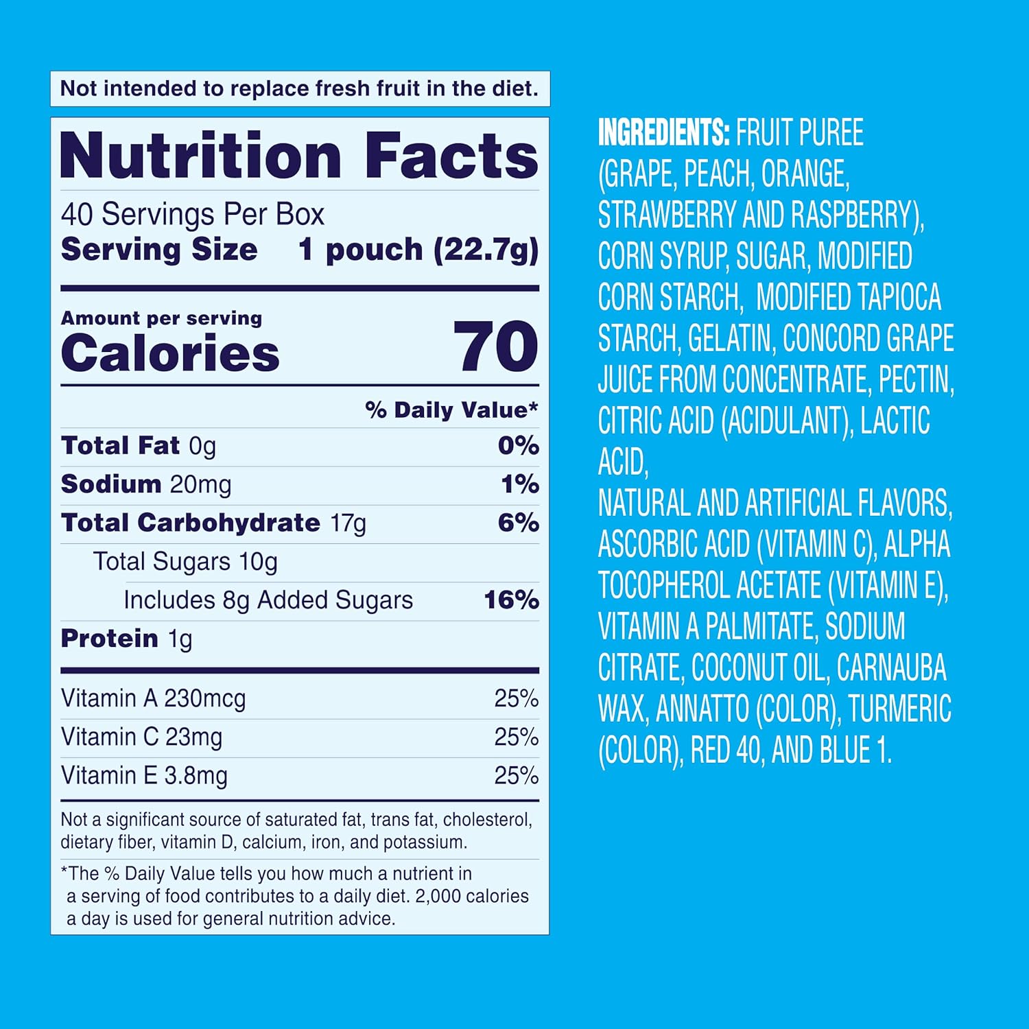 – 80 individual 0.8 oz single-serve fruit snack bags