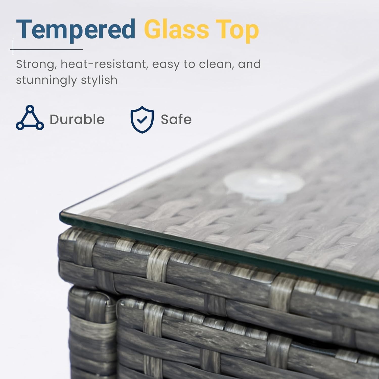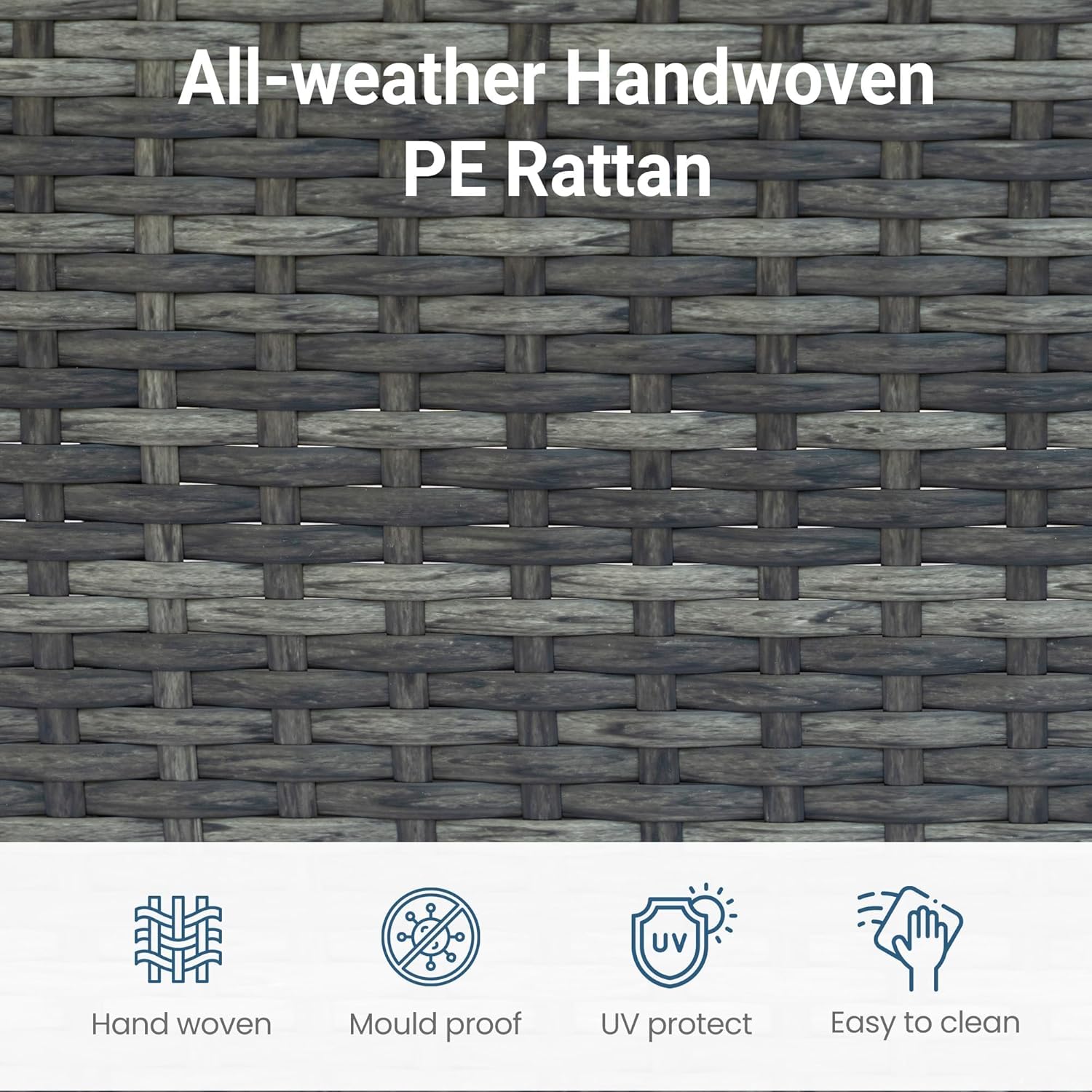 Constructed with a robust, powder-coated iron frame and handwoven PE rattan, this set is engineered for longevity. The smooth, waterproof rattan surface resists UV fading and wear, while the included coffee table features a sleek tempered glass top that is both stylish and easy to clean.