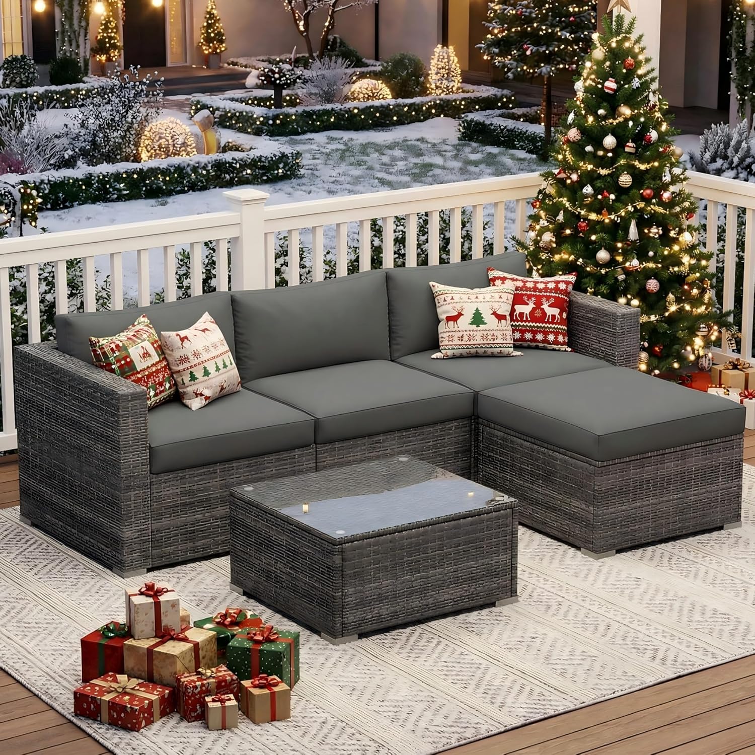 Transform your outdoor living space into a sanctuary of relaxation with the Wisteria Lane 5-Piece Modular Patio Furniture Set. Expertly designed to blend style with durability, this all-weather rattan wicker sectional sofa set offers the perfect seating solution for porches, gardens, backyards, and balconies.