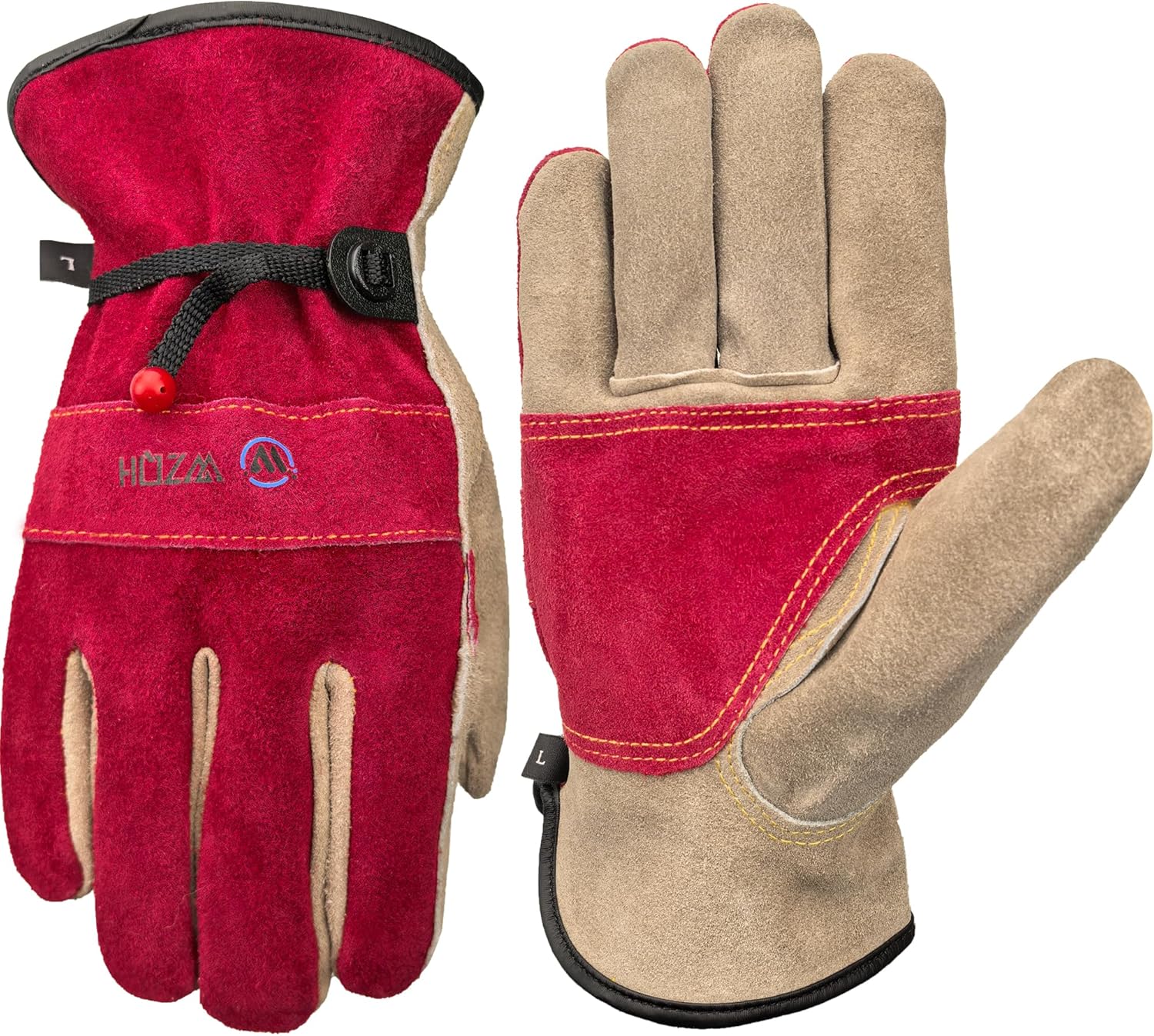 Women’s Heavy Duty Leather Work Gloves – XL Rose Red & Grey Cowhide for Gardening, Welding, Construction, Farm & Ranch