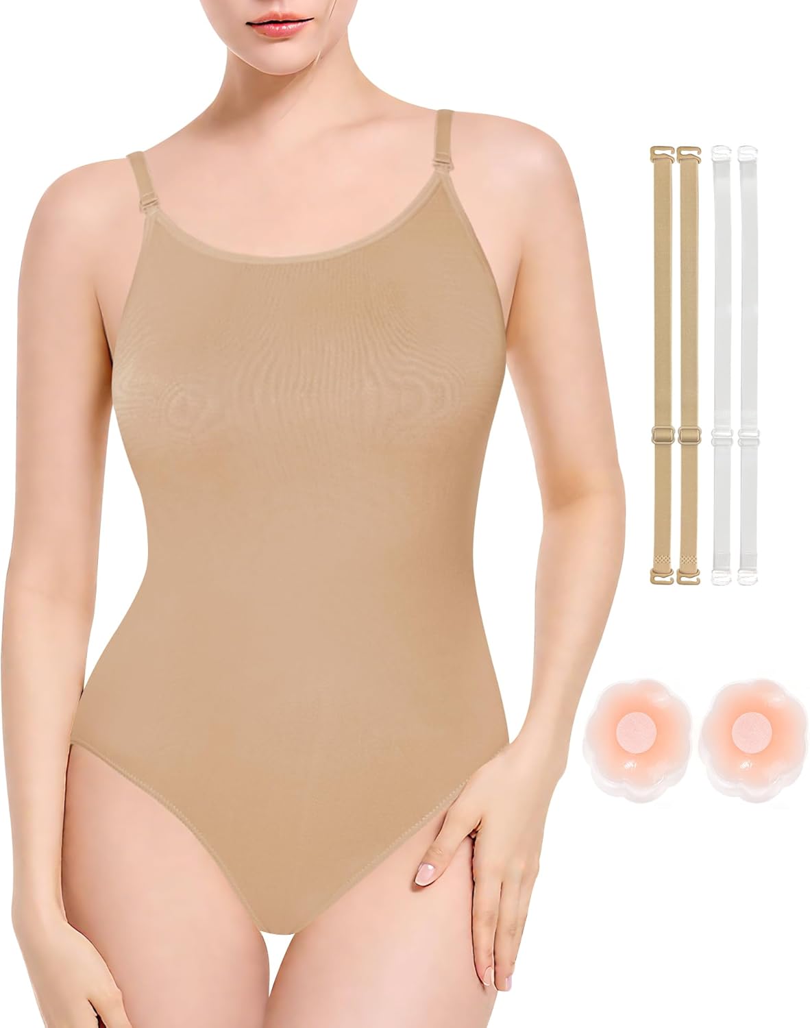 Women’s Nude Seamless Ballet Leotard with Clear Adjustable Straps – Dance & Gymnastics Undergarment Top