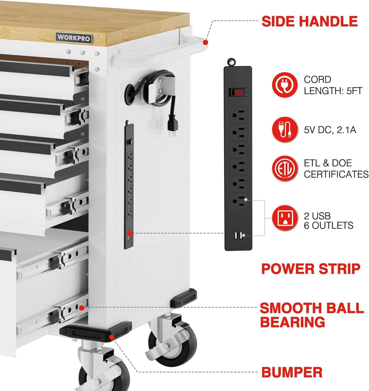 Transform your garage or workshop into a powerhouse of productivity with the WORKPRO 52″ Rolling Tool Chest. Designed for serious DIYers and professional mechanics, this heavy-duty cabinet combines massive storage capacity with integrated power solutions.