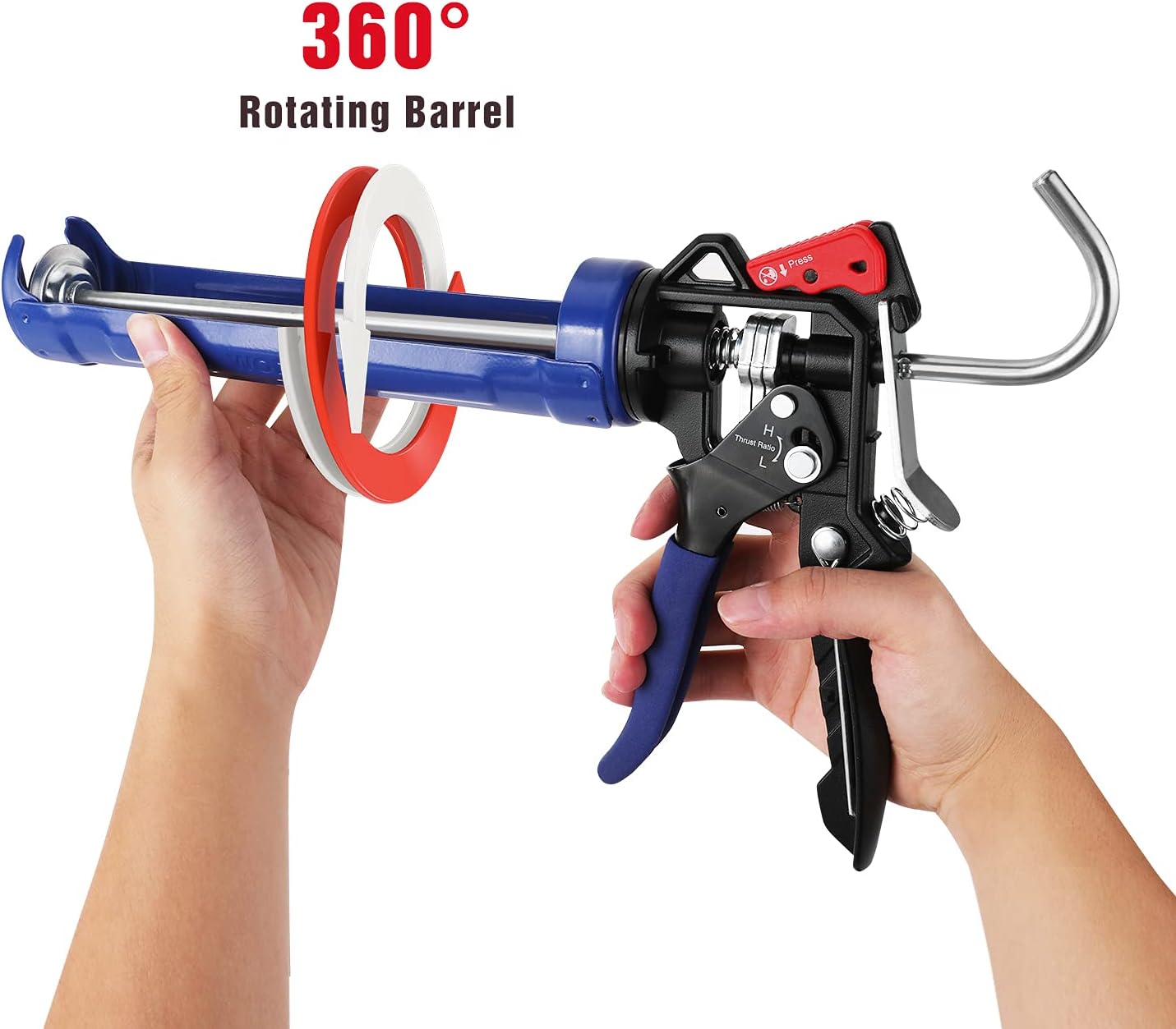 • 18:1 High Thrust Ratio: Engaged by pulling the trigger handle down, this high-pressure setting is perfect for extruding tough, adhesive materials that require significant force.