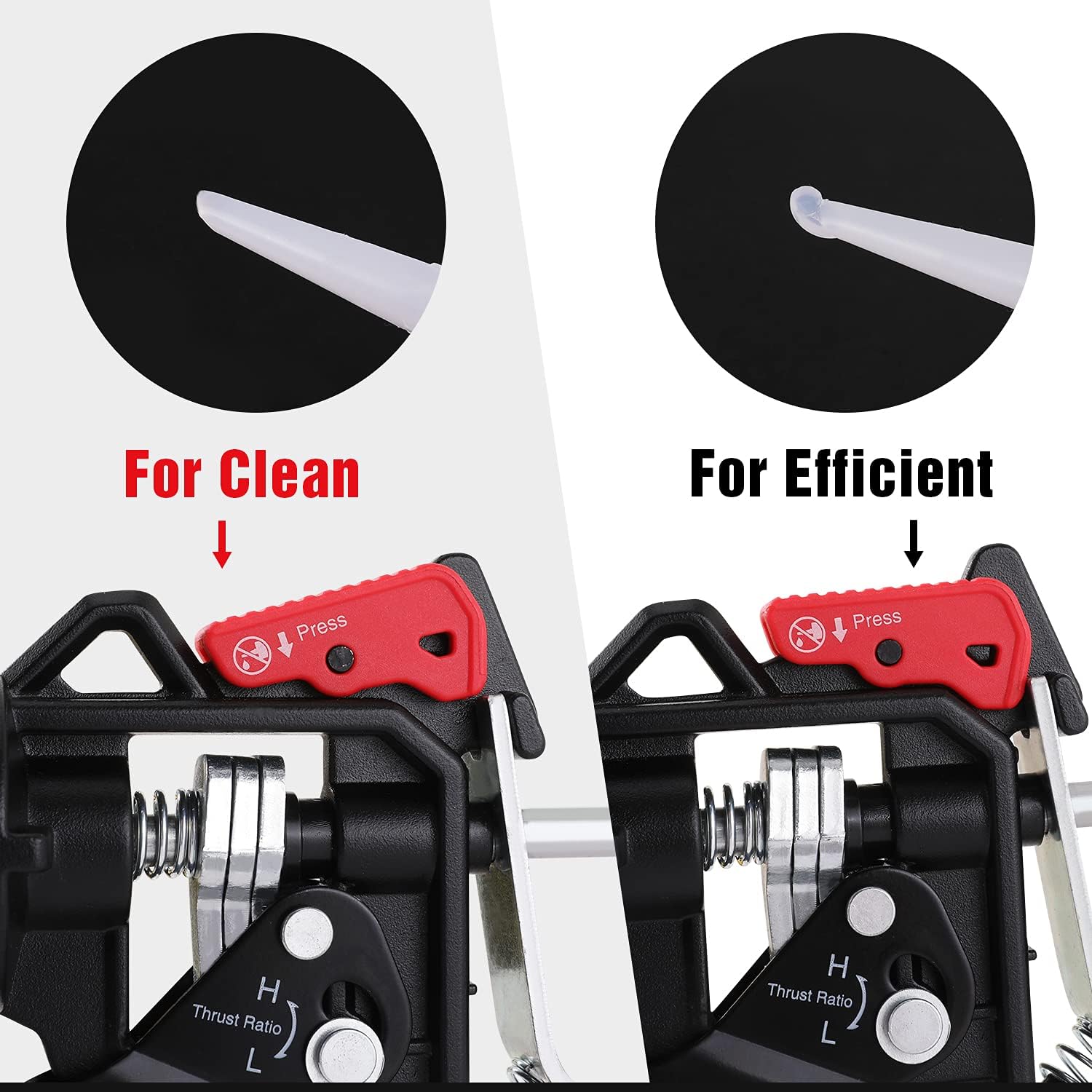 • ADJUSTABLE THRUST RATIO: Switch instantly between 18:1 (for adhesives) and 9:1 (for acrylics) to match the viscosity of your material.