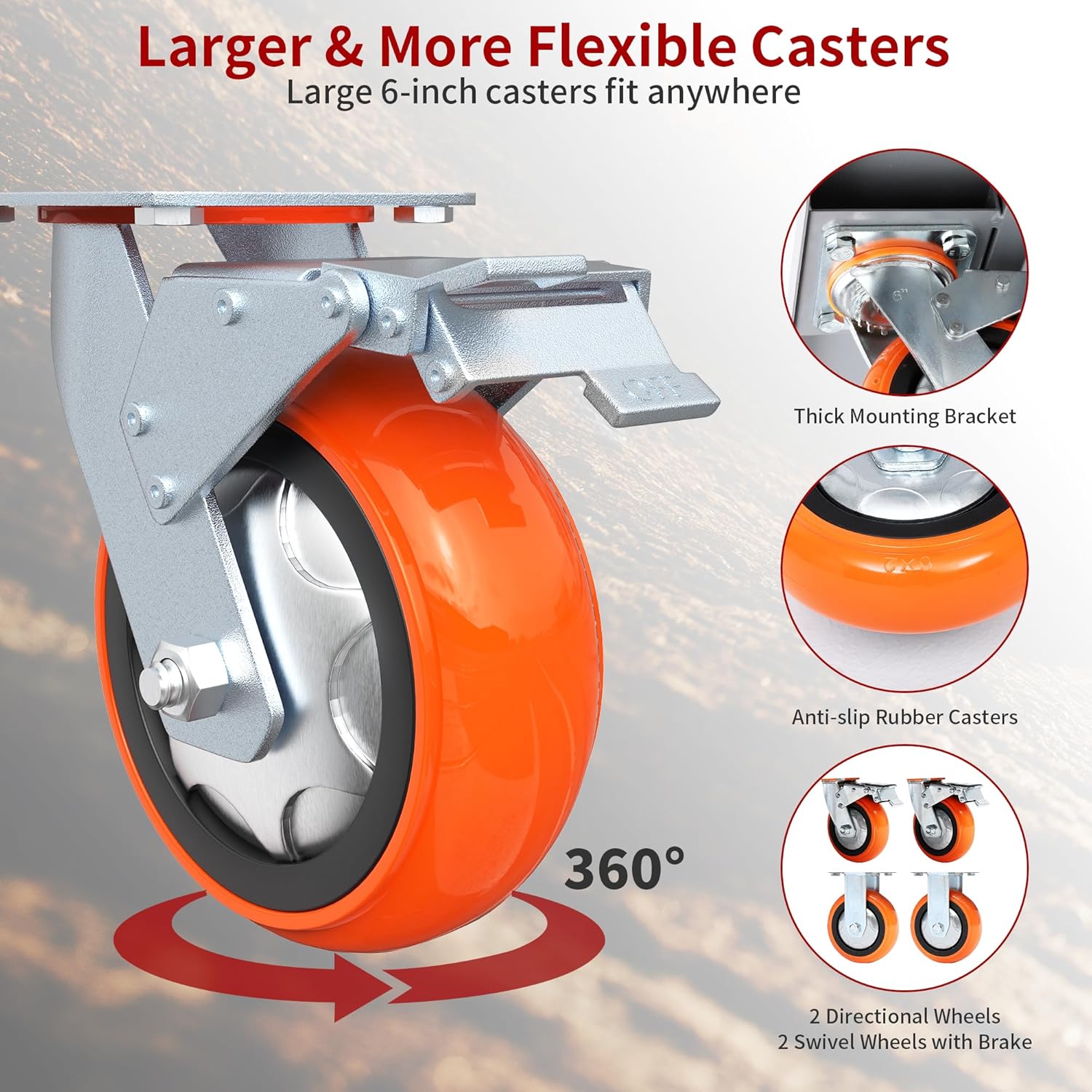 Navigate tight corners and rough terrain with ease. Equipped with four 6-inch swivel casters (two with locking brakes), this dolly offers smooth, stable movement. The reinforced base plate and 7.5-inch ground clearance protect your cargo, while the ergonomic handle reduces fatigue during prolonged use.