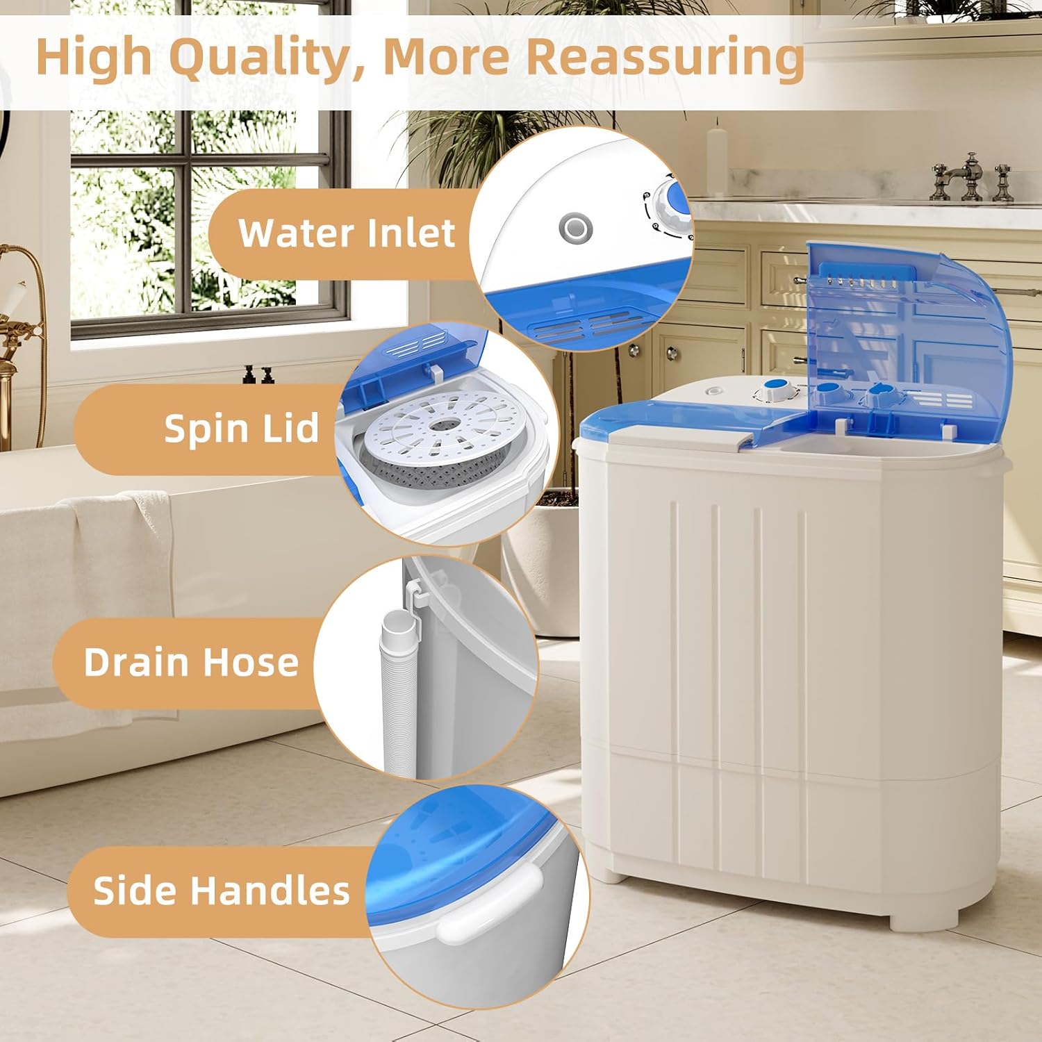 - Durable Build: Constructed with a high-quality plastic body and a stainless steel spin tub to ensure long-lasting durability and resistance to rust.